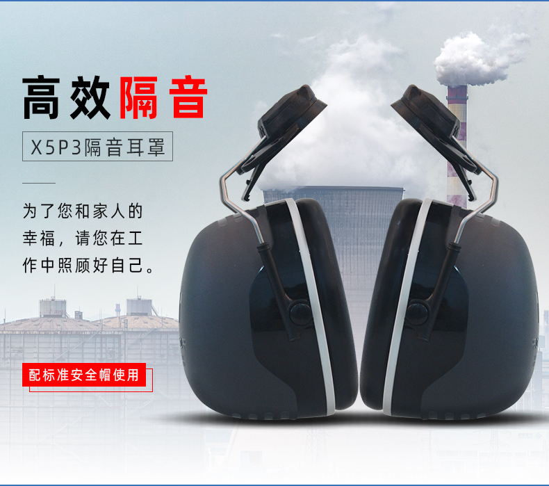 3M挂安全帽隔音耳罩专业防噪音工业抗噪建筑打磨工地降噪耳机 【3M正品】X4P3隔音耳罩