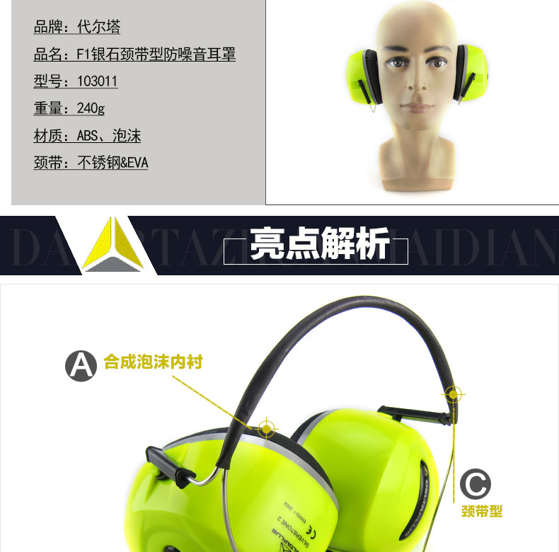 代尔塔隔音耳罩防噪音耳罩睡觉防噪音睡眠用工业工厂学习103011 黄色