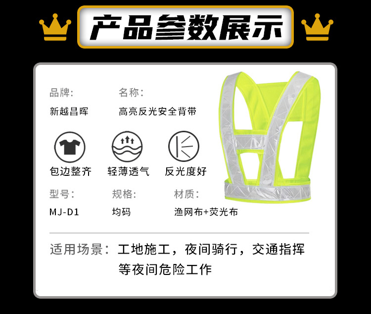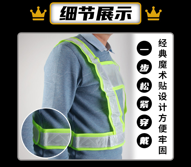 3D人体力学裁剪,穿着更透气舒适,高亮反光条,可视性强,魔术贴设计,一步轻松穿脱