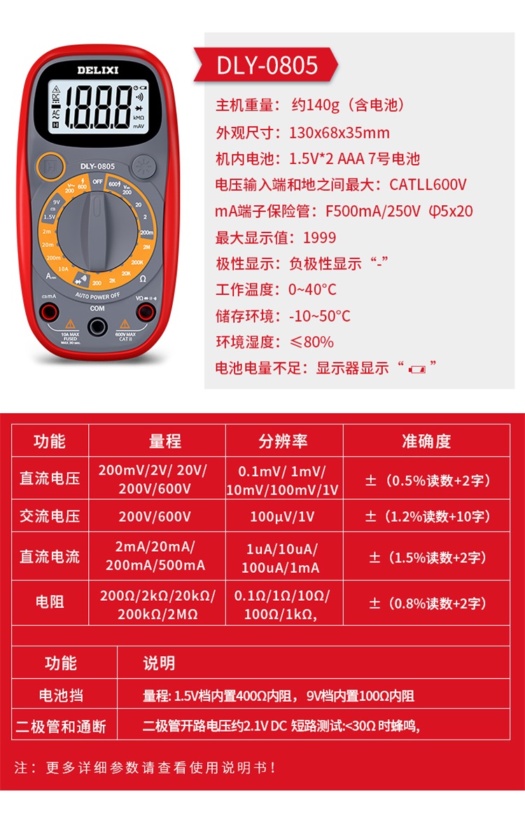 德力西多用表万能表全智能仪器万用表数字高精度万能表电工专用表 0803旗舰