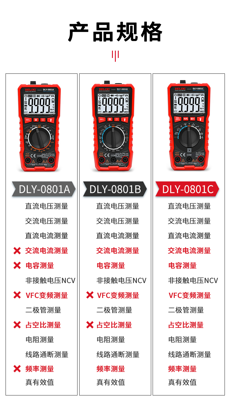 德力西万用表数字高精度全自动万能表智能防烧维修电工数显交直流 5999量程-交直流电+频率+温度