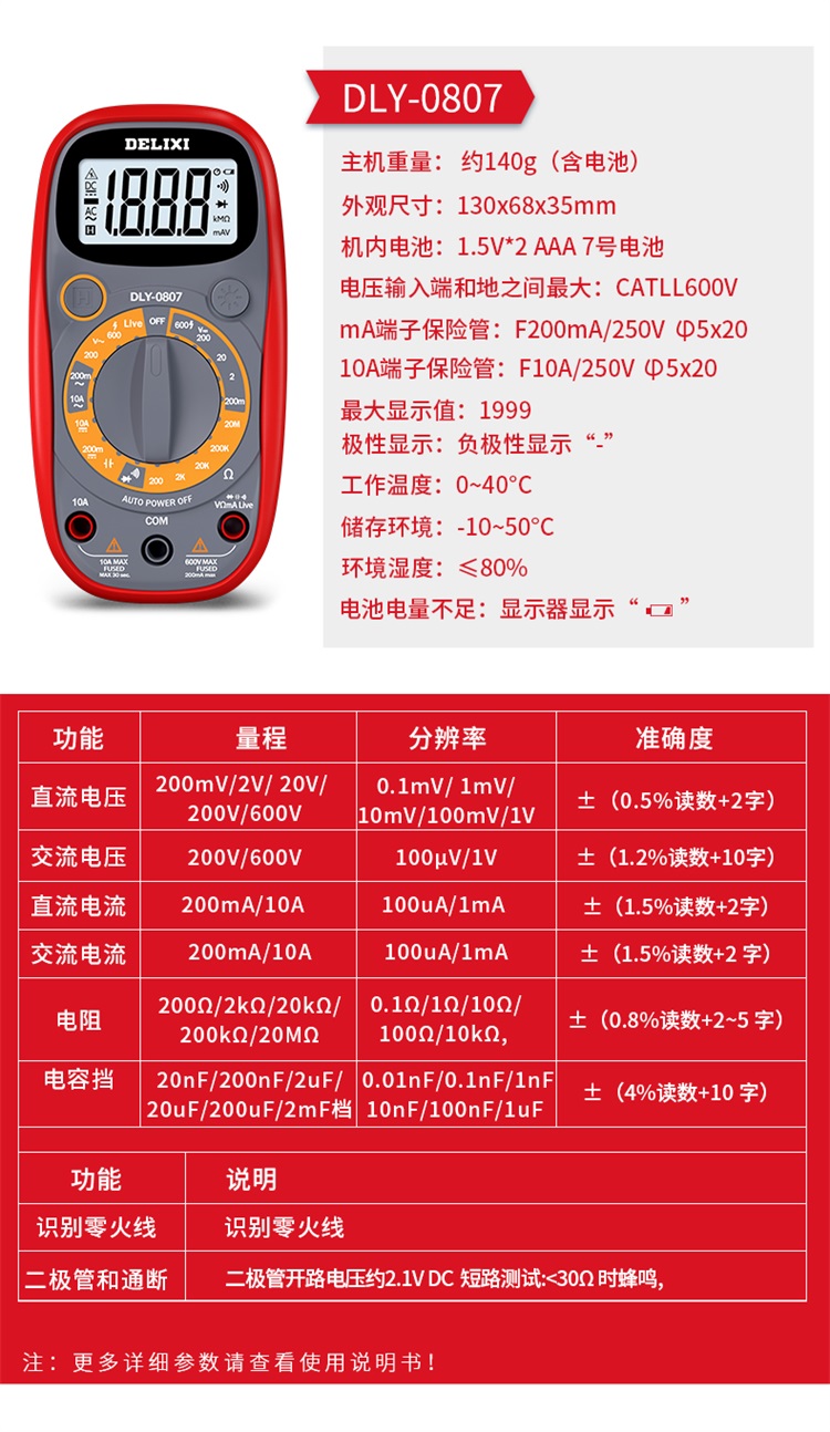 德力西多用表万能表全智能仪器万用表数字高精度万能表电工专用表 0807旗舰