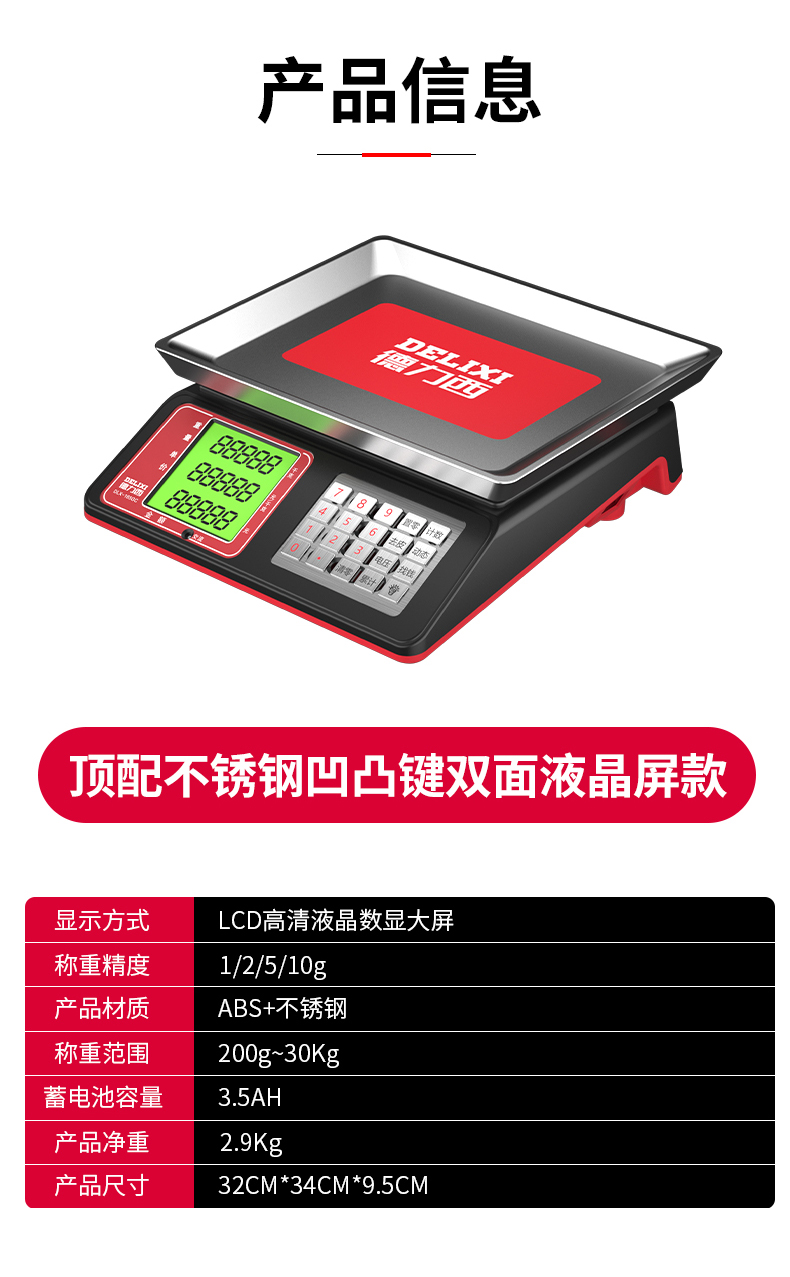 德力西电子秤商用家用小型台秤30kg公斤计价精准称重烘焙厨房 省电实用款液晶屏30kg凹盘 电子计价秤