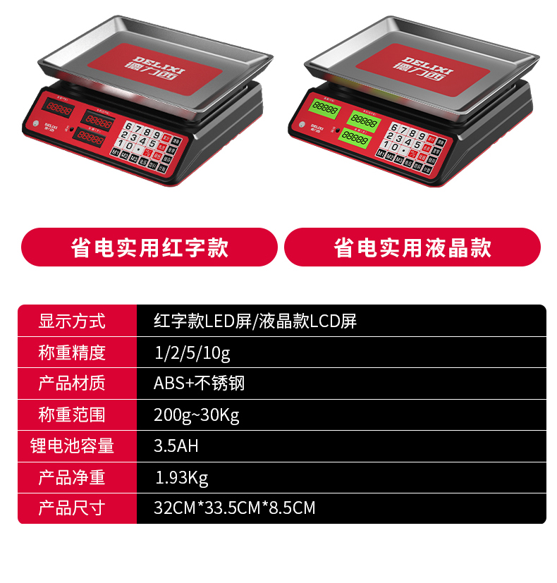 德力西电子秤商用家用小型台秤30kg公斤计价精准称重烘焙厨房 升级不锈钢按键液晶屏30kg凹盘 电子计价秤