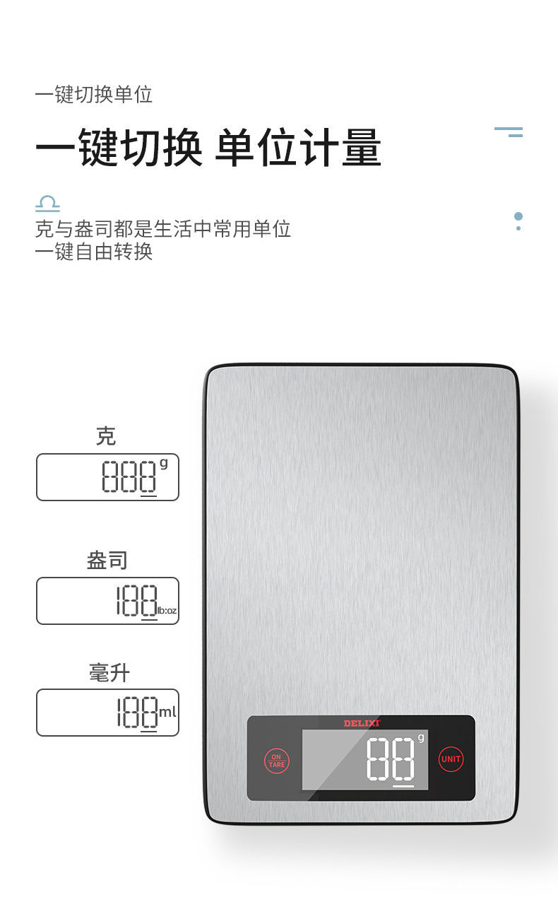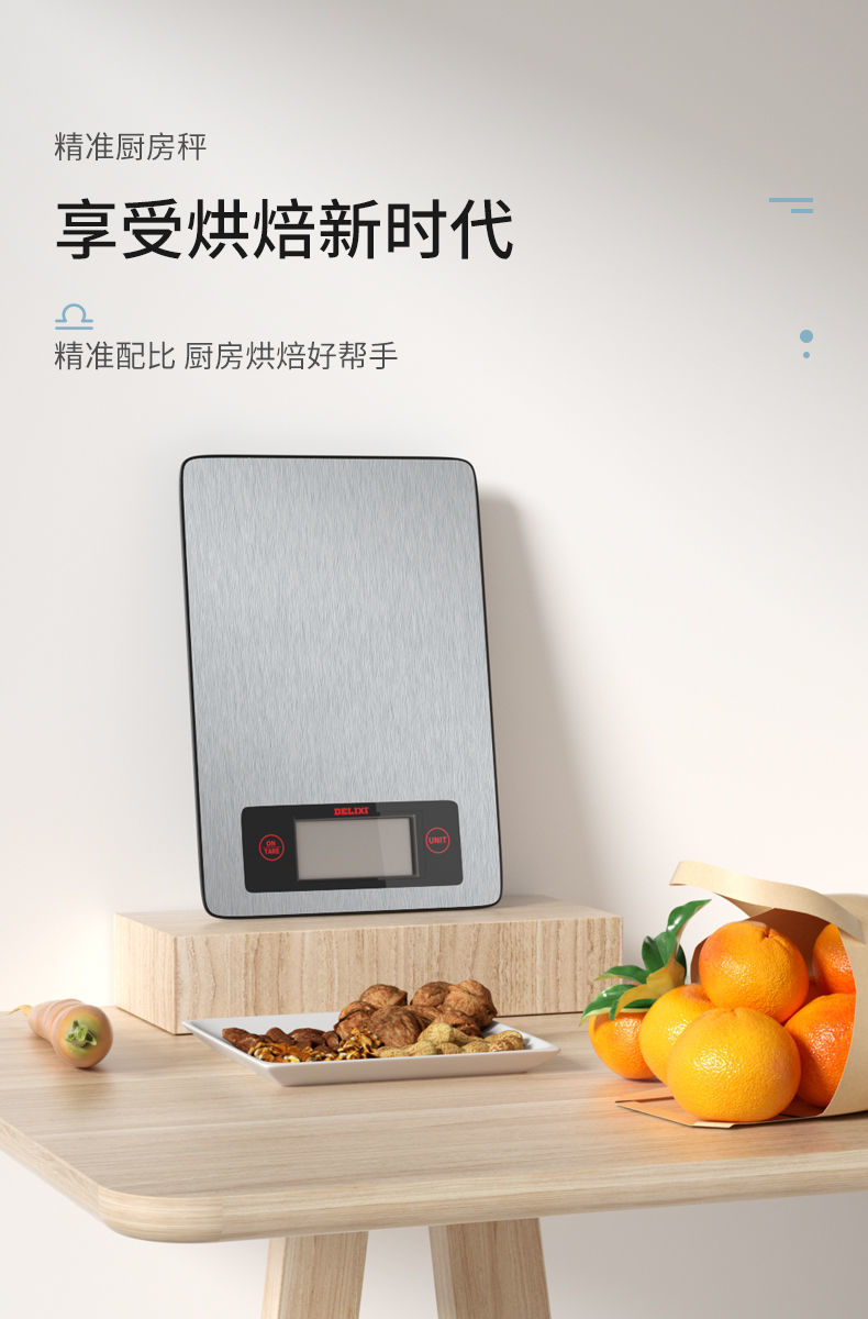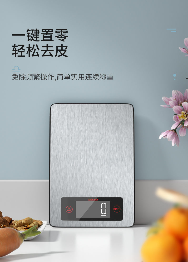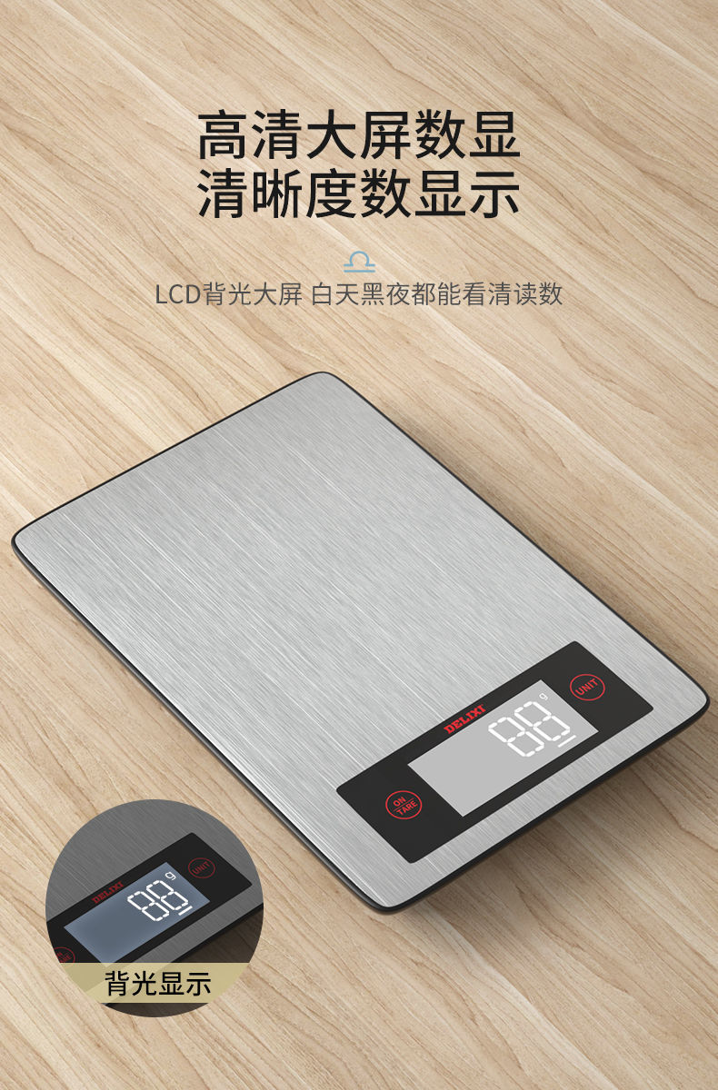 德力西天平厨房秤高精度电子秤克称家用小型烘焙称食物称重器 电池基础款 5000g