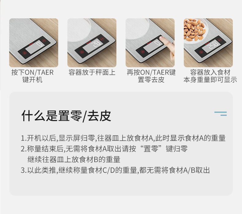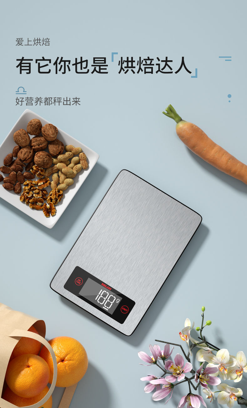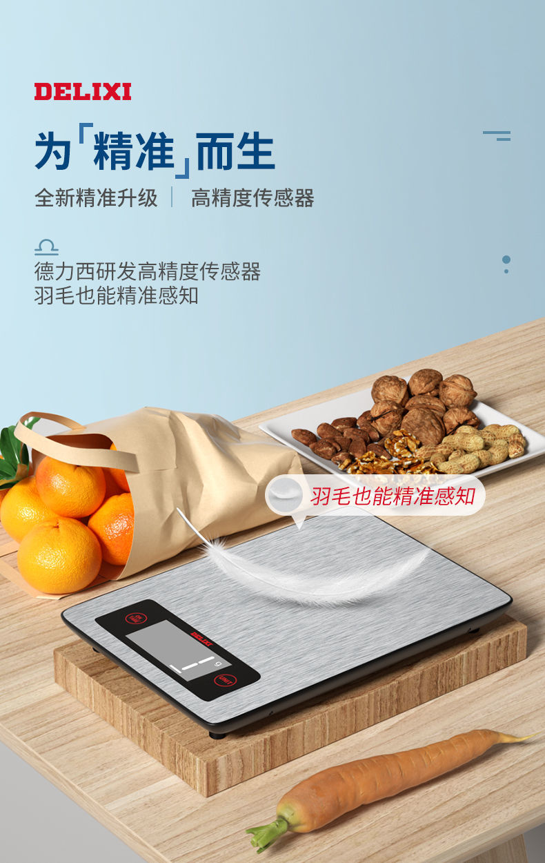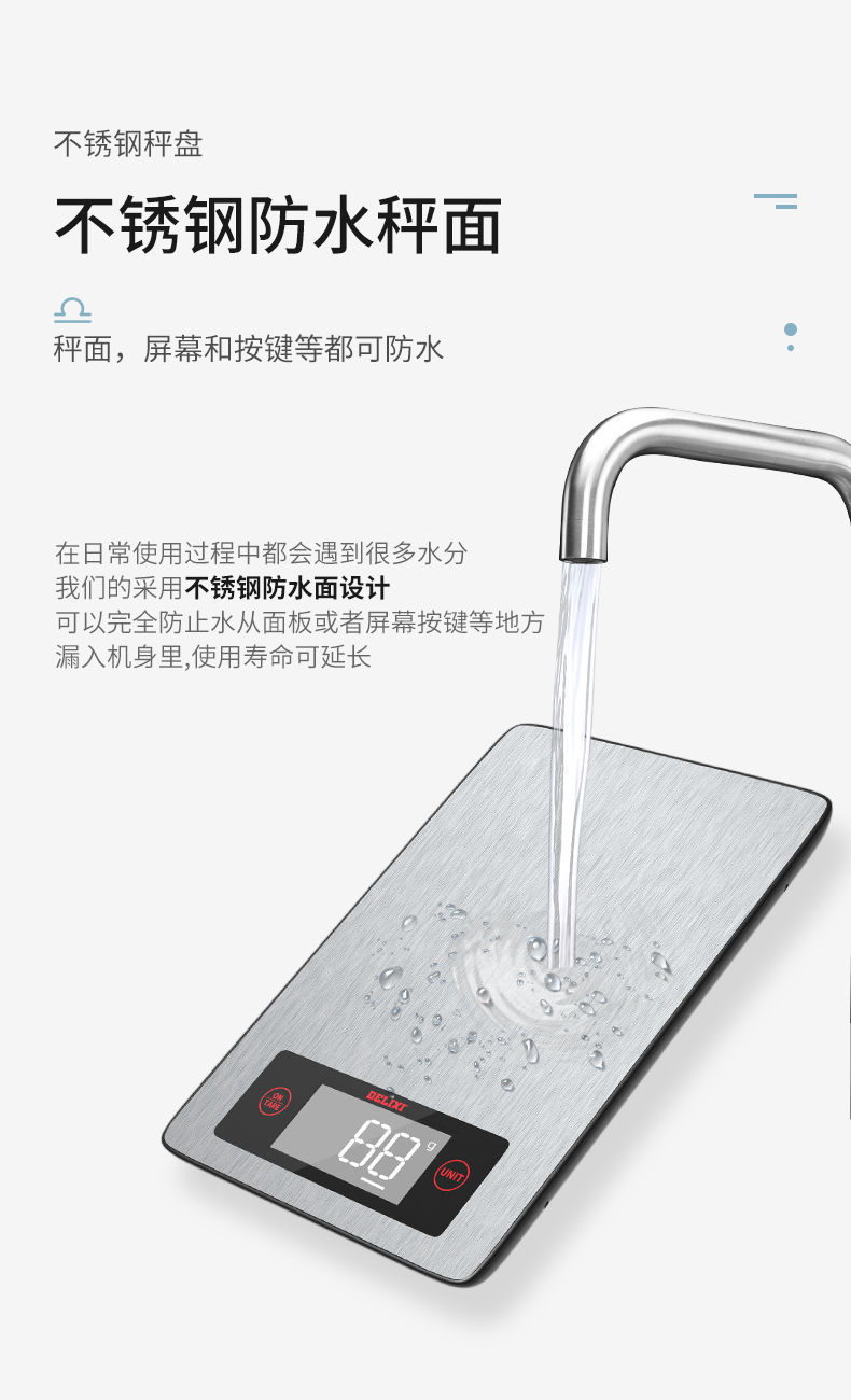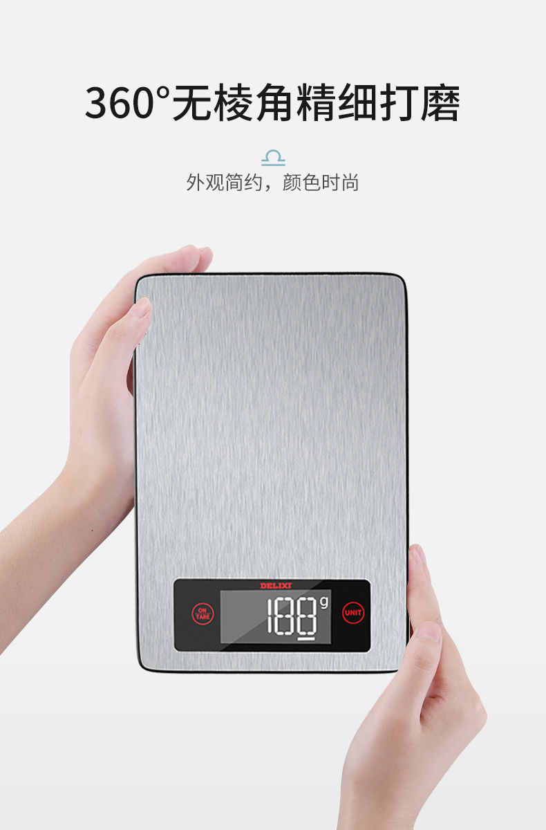 德力西天平厨房秤高精度电子秤克称家用小型烘焙称食物称重器 不锈钢升级款 5000g