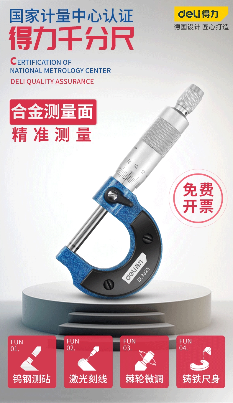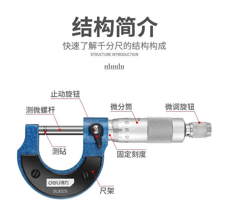 得力(deli)外径千分尺精度0.01高精度数显千分尺测厚仪螺旋测微器工业级 DL9325合金钢0-25mm专业级高精度0.01赠品