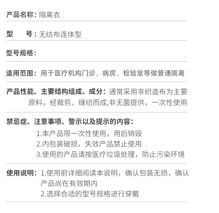 一次性医用隔离衣连体防护医院隔离服防病毒防护防疫连体全身隔离衣带帽