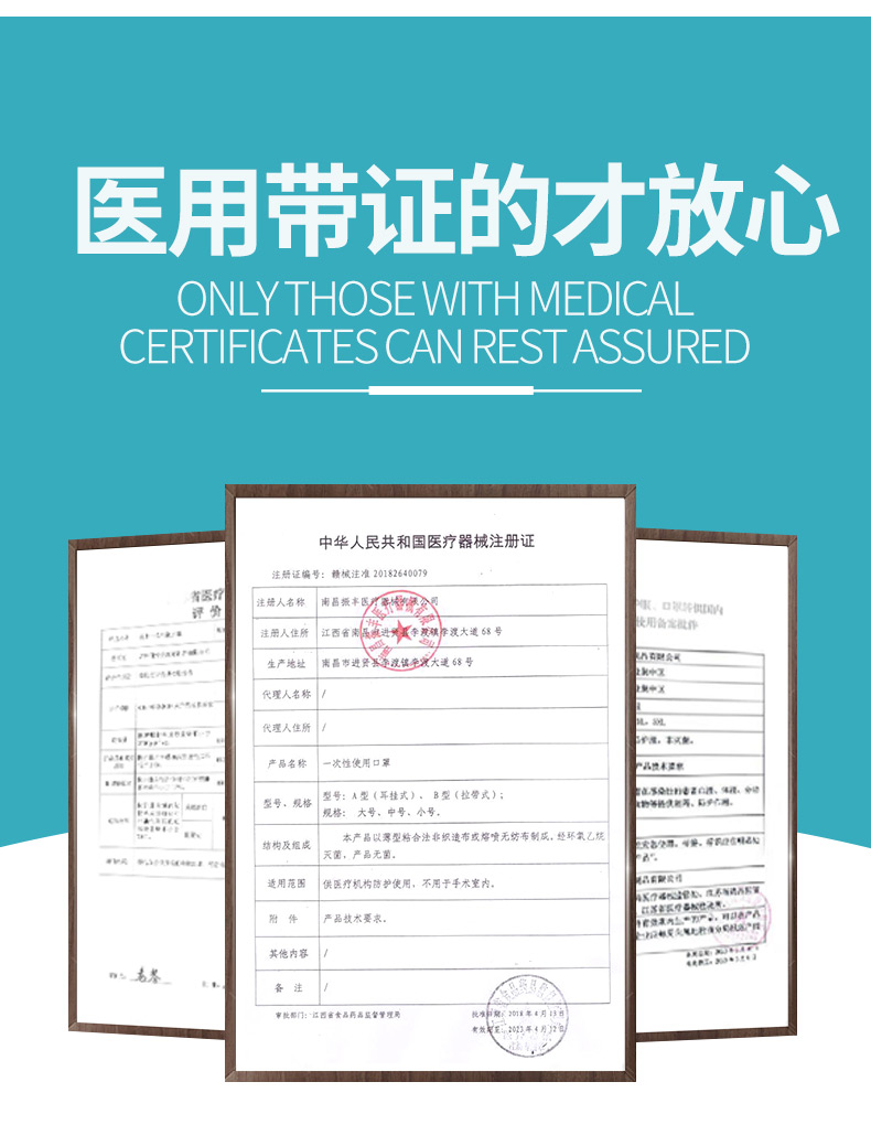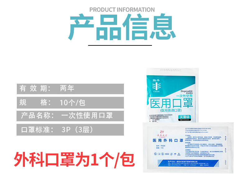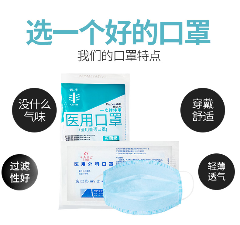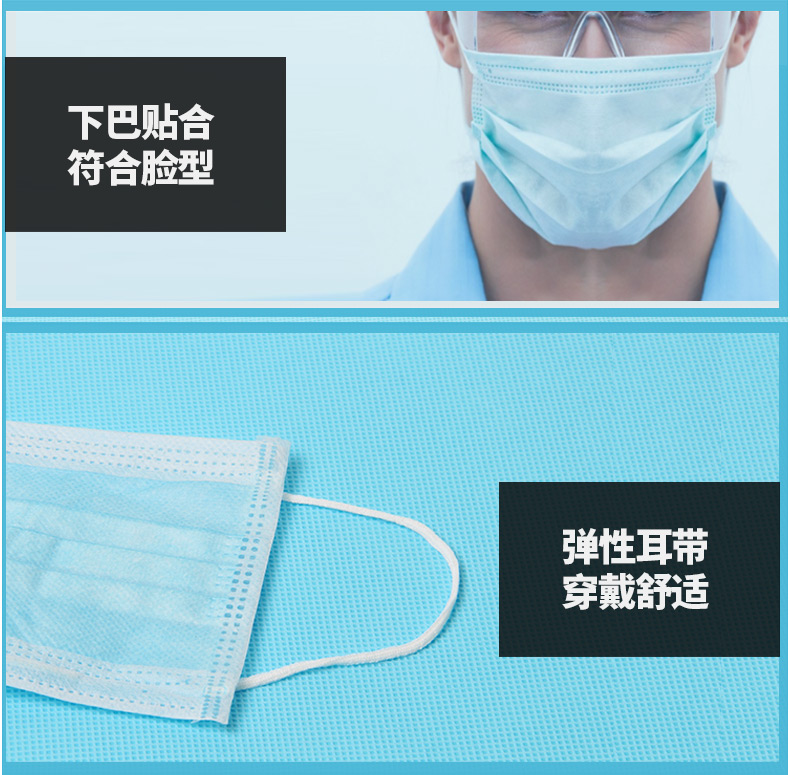 医用口罩医用外科口罩三层蓝色灭菌防护口罩独立包装 100只