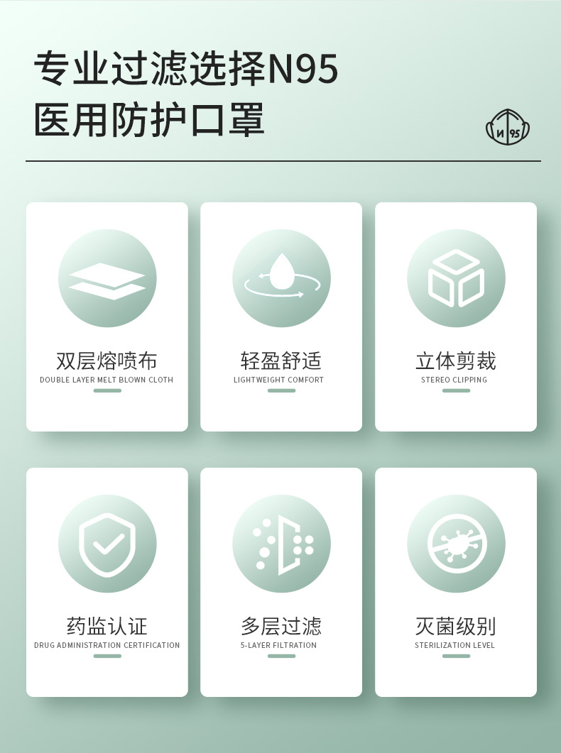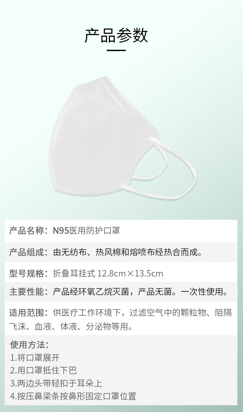 N95医用防护口罩一次性立体成人灭菌级折叠耳挂式防尘口罩无菌独立包装10个 独立包装10只