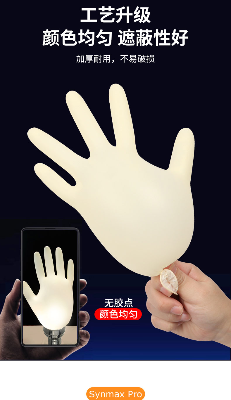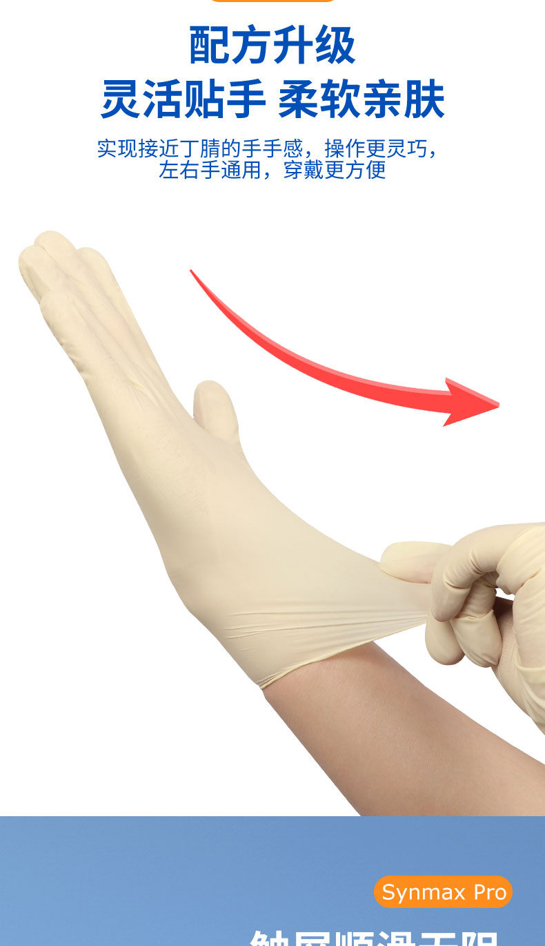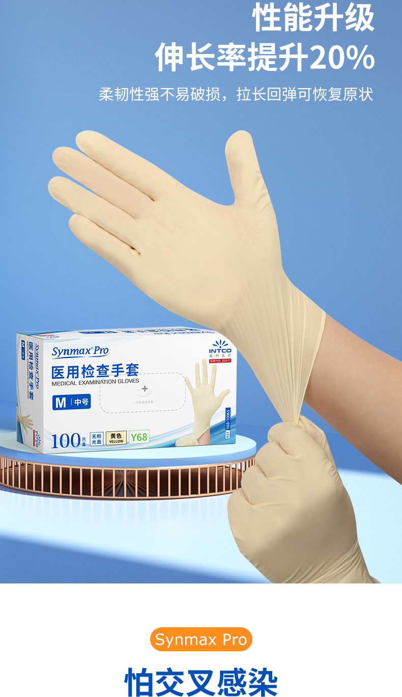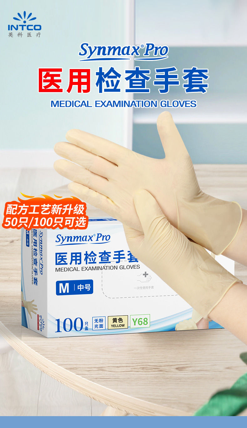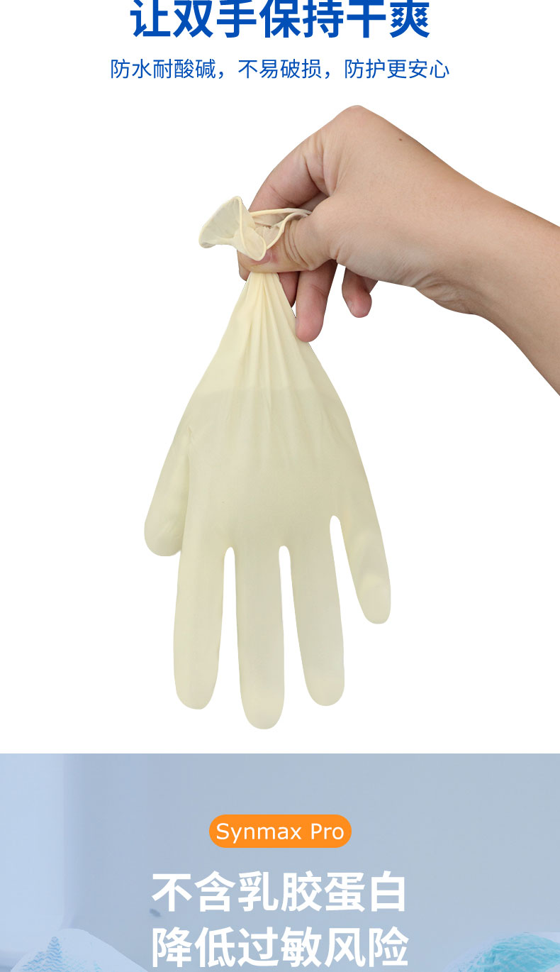 医用检查手套一次性手套 防交叉感染加厚高弹耐用 米黄色 50只/盒