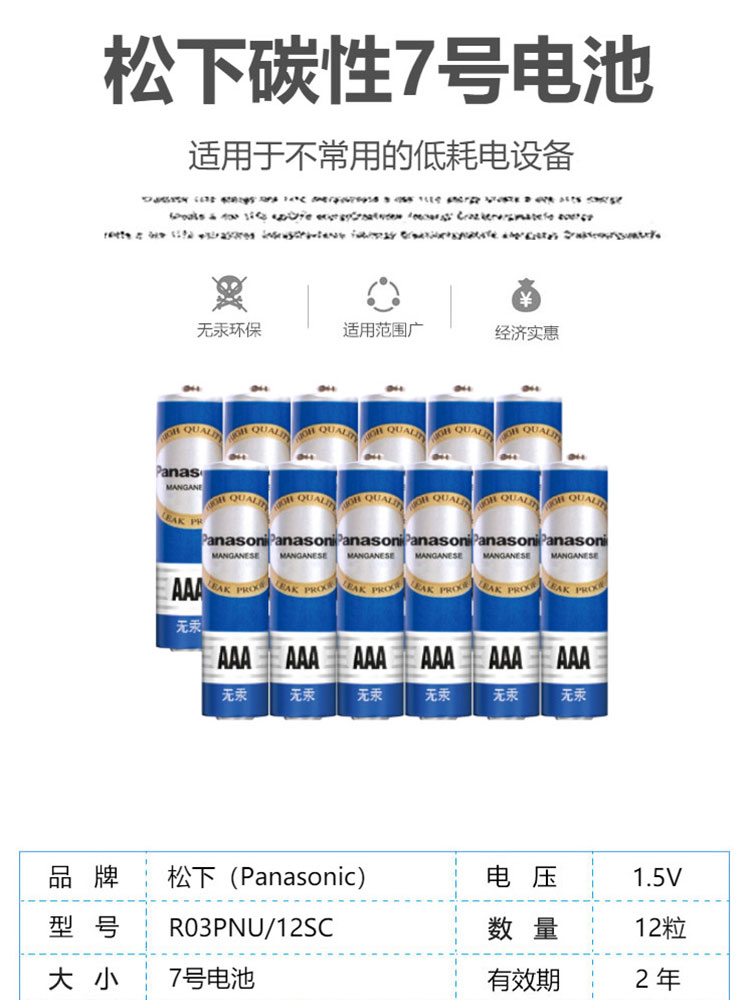 松下碳性7号干电池12粒装适用于遥控器手电筒玩具键盘鼠标收音机R03PNU/12SC