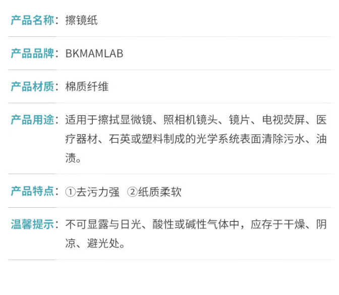 比克曼生物 擦镜纸实验室眼镜相机显微镜用镜头纸镜片屏幕擦拭清洁纸【擦镜纸】10*7.5cm300张/盒 1盒