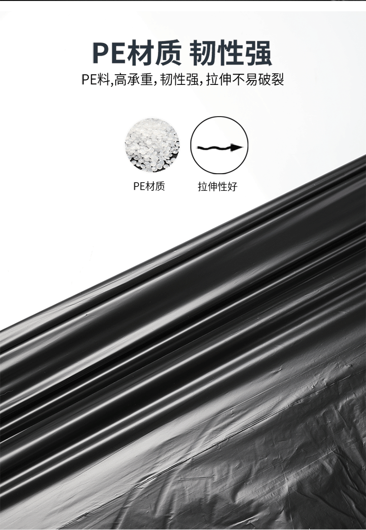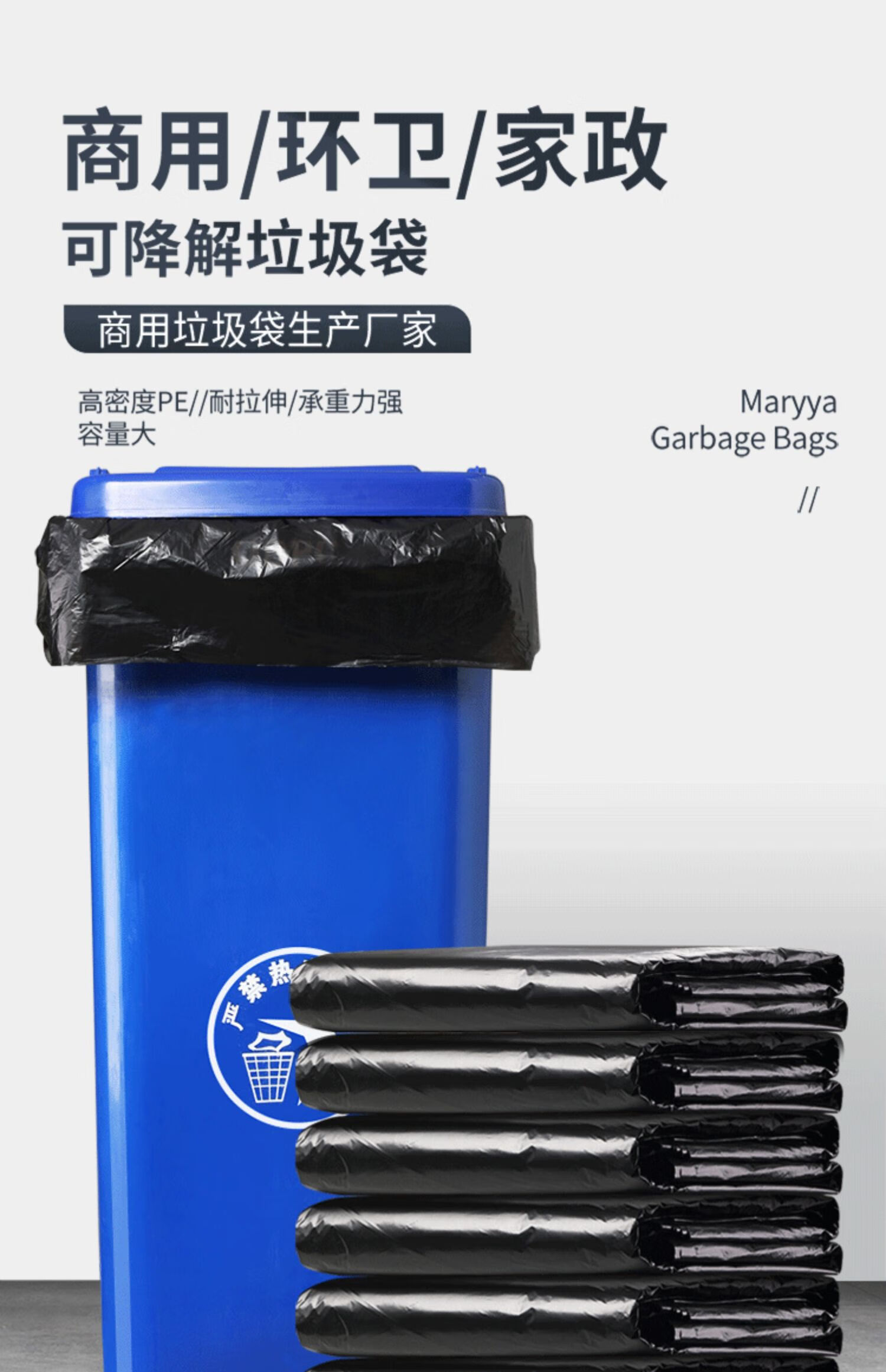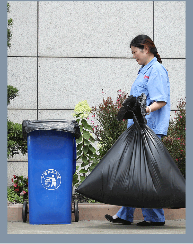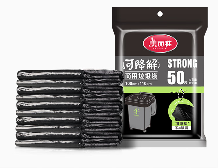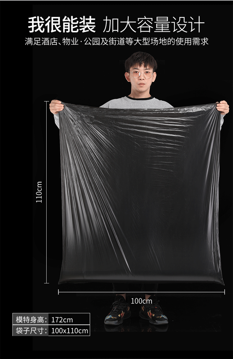 美丽雅商用垃圾袋大号厚实黑色酒店环卫物业塑料袋加厚型清洁平口 100X110cm 【50只】1.6丝 加厚