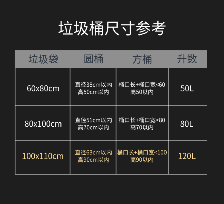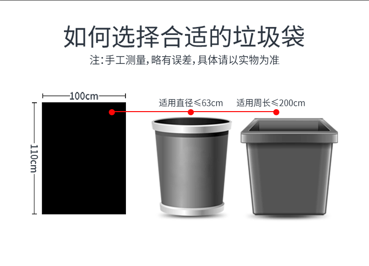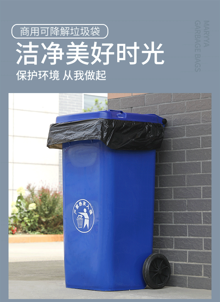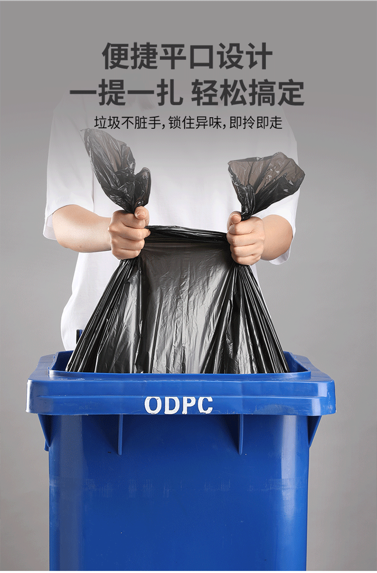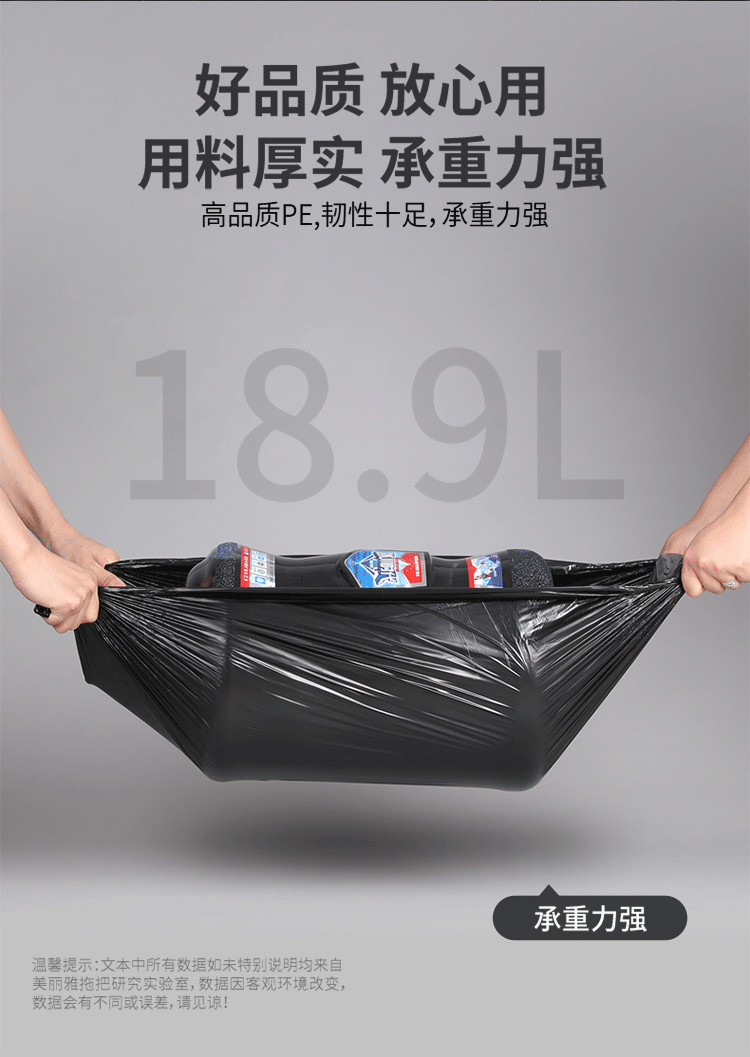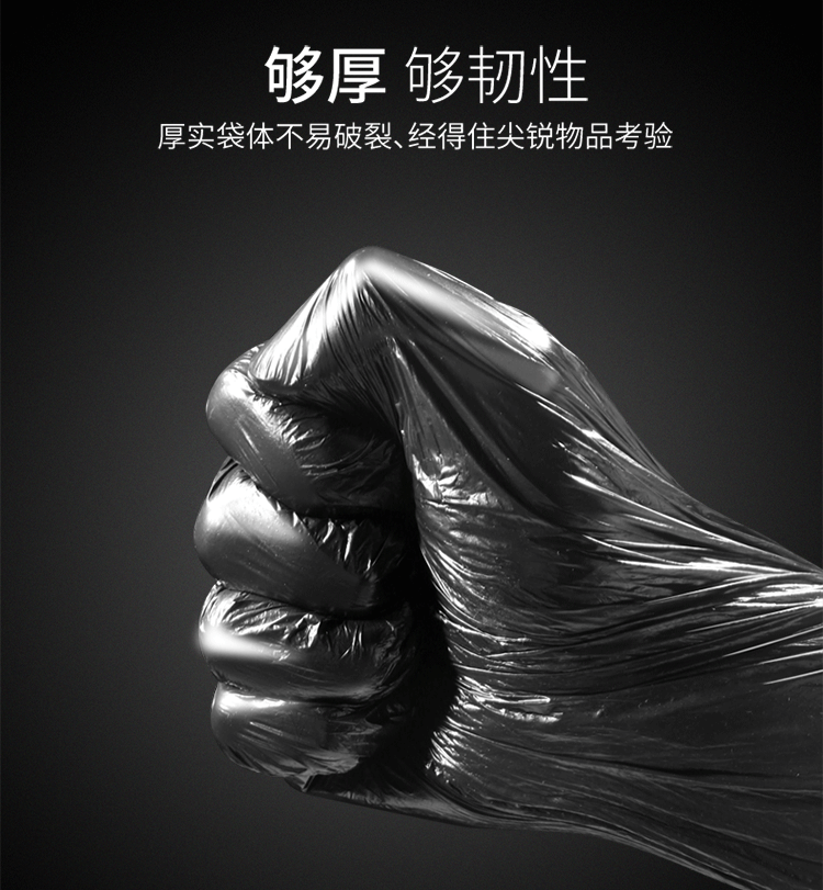 美丽雅商用垃圾袋大号厚实黑色酒店环卫物业塑料袋加厚型清洁平口 100X110cm 【50只】1.6丝 加厚