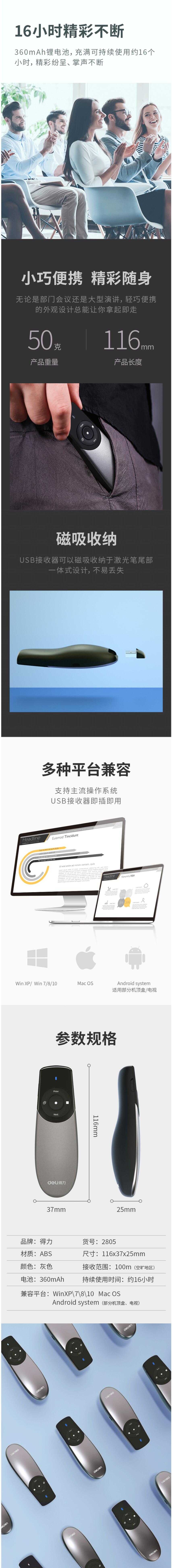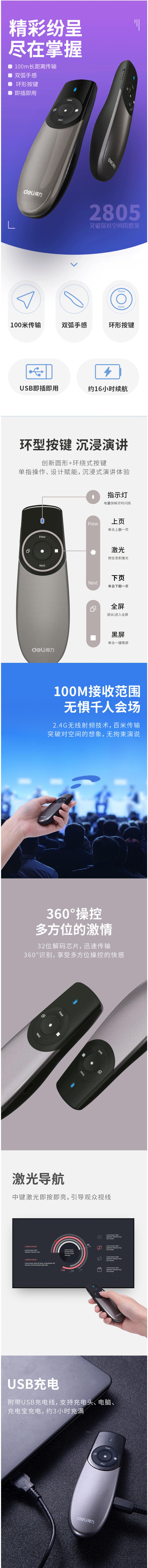 得力(deli)2805激光笔 可充电翻页笔电子笔演讲笔 PPT翻页笔 投影笔激光翻页笔教鞭 无线演示翻页器 红光 灰色