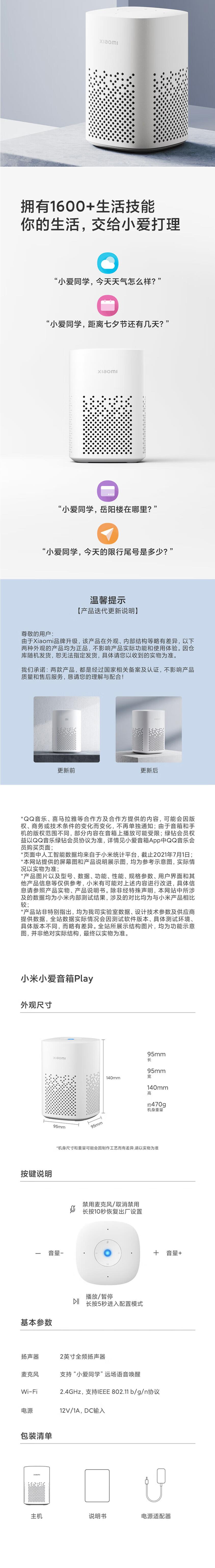 小米小爱音箱Play智能音箱小爱同学家用蓝牙音响