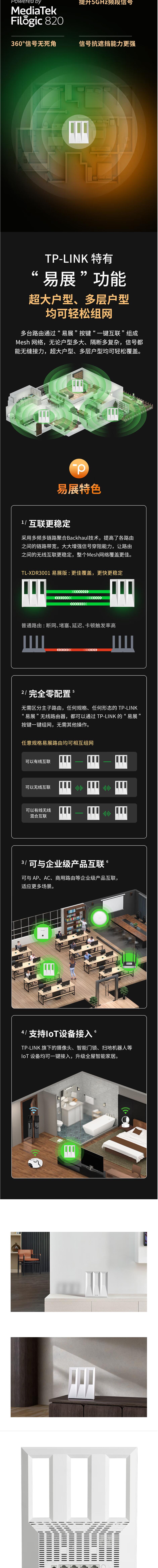TP-LINK AX3000满血WiFi6千兆无线窗路由 5G双频游戏路由 Mesh 3000M无线速率 支持双宽带接入 XDR3001易展版