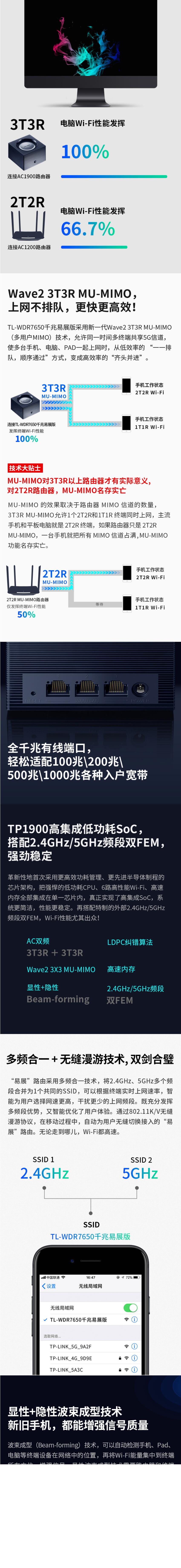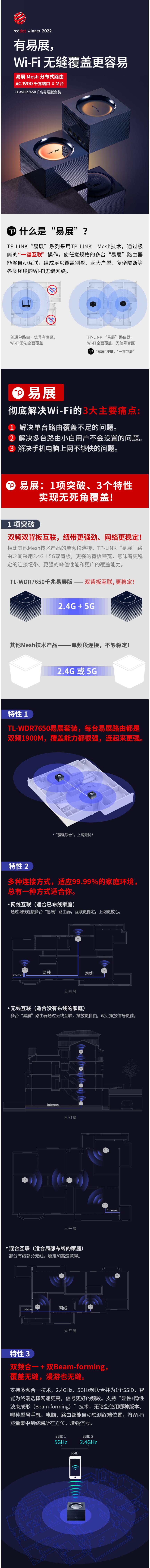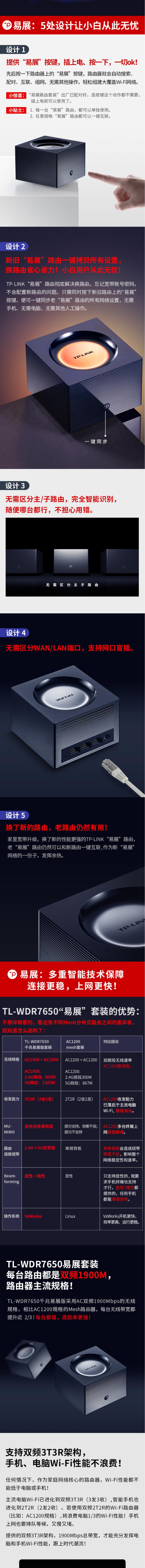 TP-LINK 易展mesh分布路由器单只装 1900M全千兆 WDR7650千兆 智能5G双频高速无线 IPv6【配千兆网线】