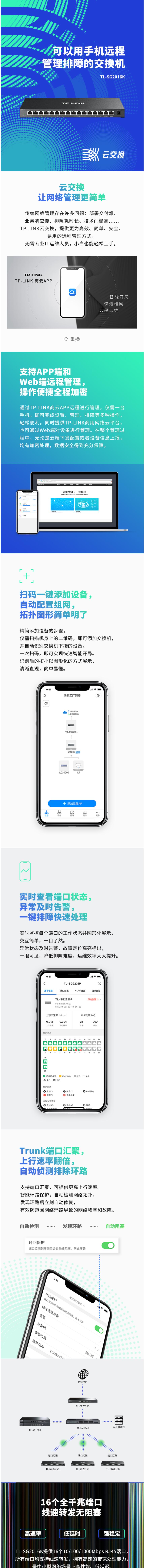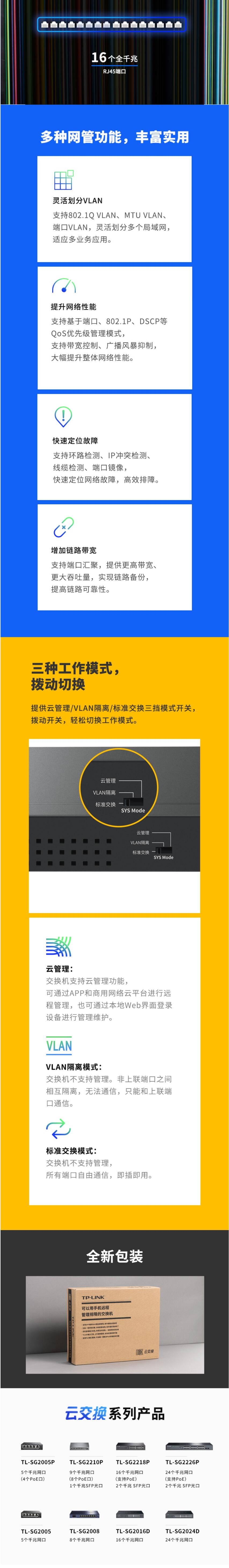 TP-LINK 云交换TL-SG2016K 16口全千兆Web网管 云管理交换机 企业级交换器 监控网络网线分线器 分流器