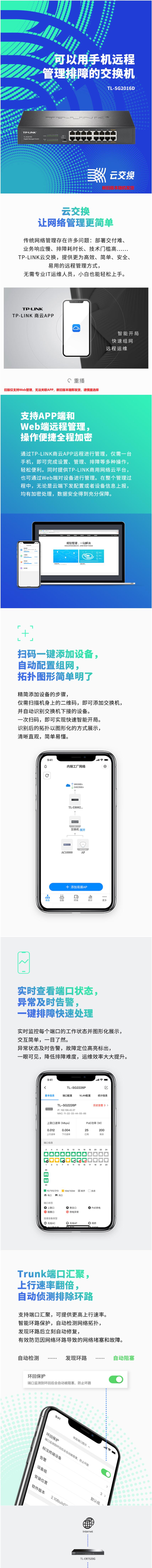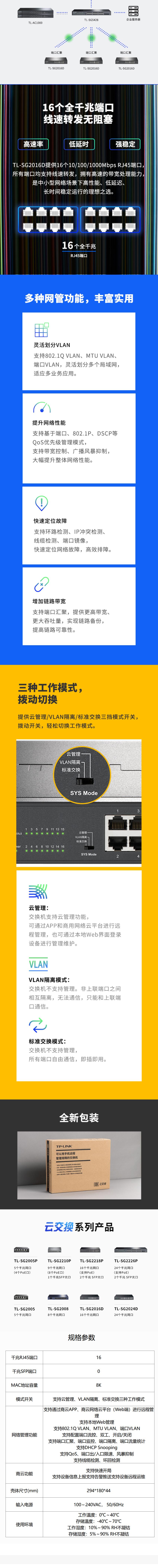 TP-LINK 云交换TL-SG2016D 16口全千兆Web网管 云管理交换机 企业级交换器 监控网络网线分线器 分流器