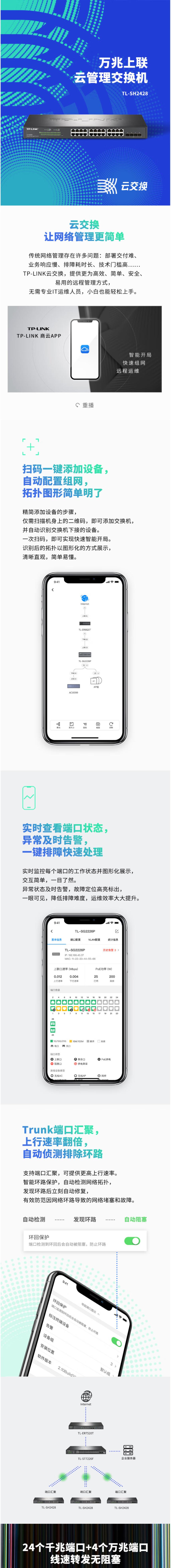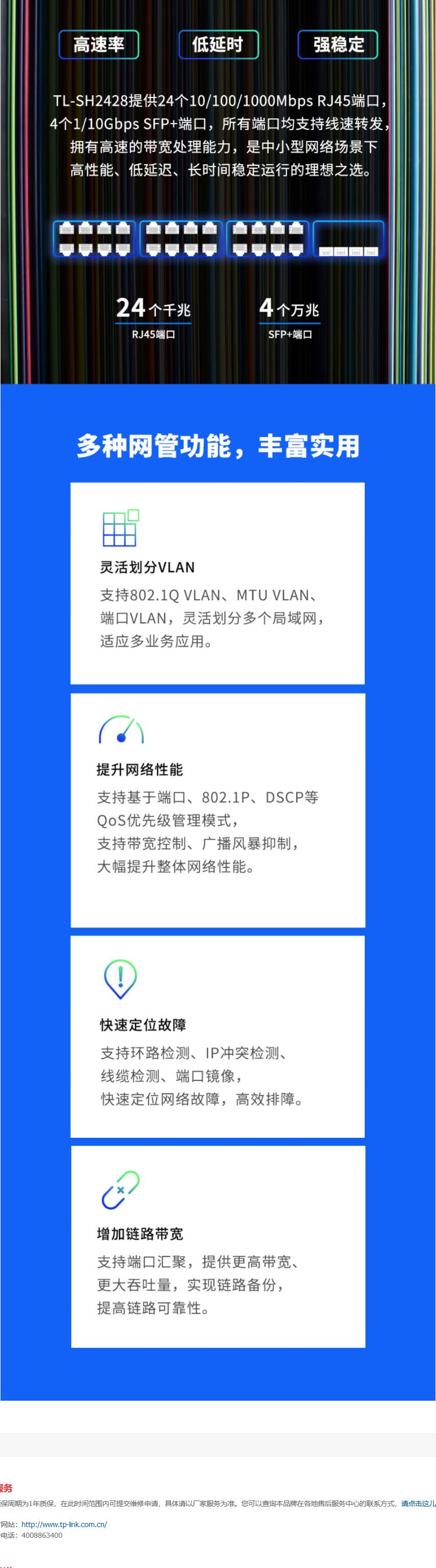 普联(TP-LINK)24口千兆电+4万兆光纤口二层Web网管万兆上联云管理企业级交换机 TL-SH2428
