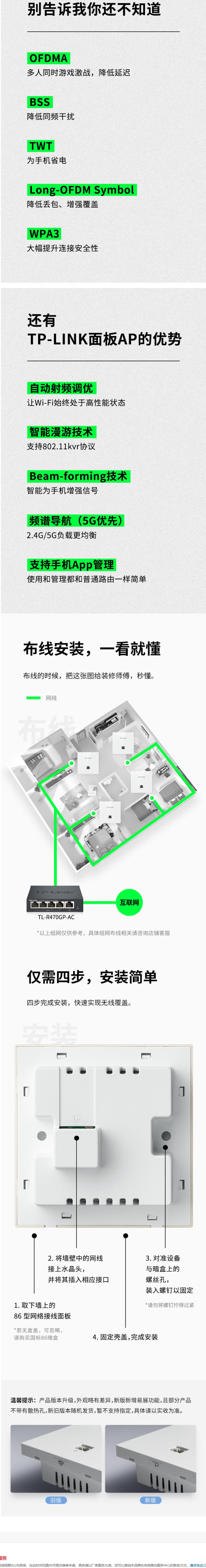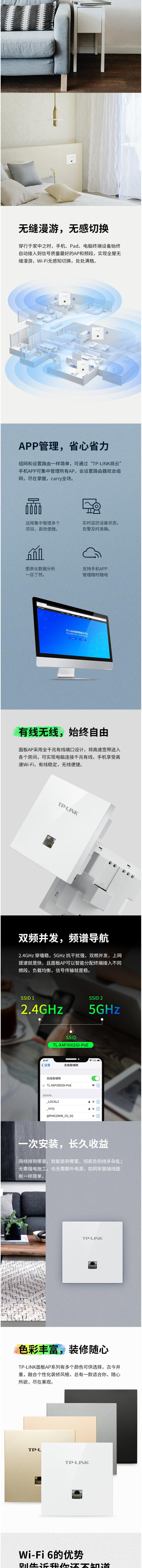 TP-LINKAX3000无线面板AP全屋WiFi6薄款路由器千兆双频无线覆盖企业家庭组网5口AC一体机*1+AP*4白色