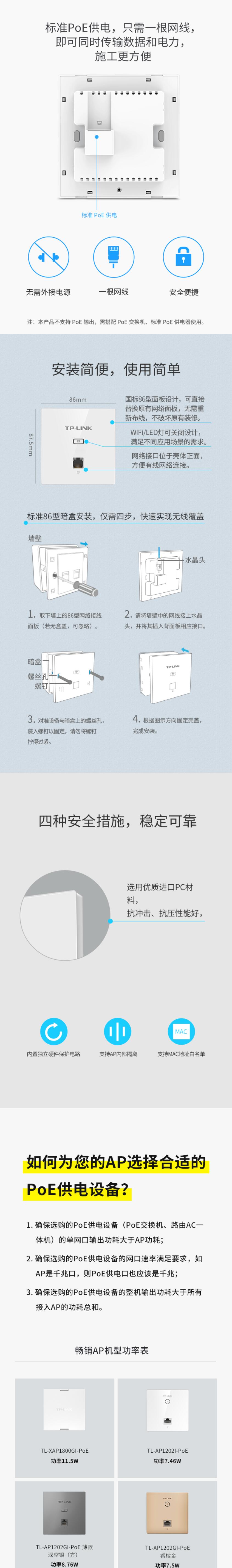 TP-LINK AC1200双频无线面板AP 企业级全屋分布式全屋wifi接入点 酒店别墅大户型无线覆盖 AP1202GI-PoE