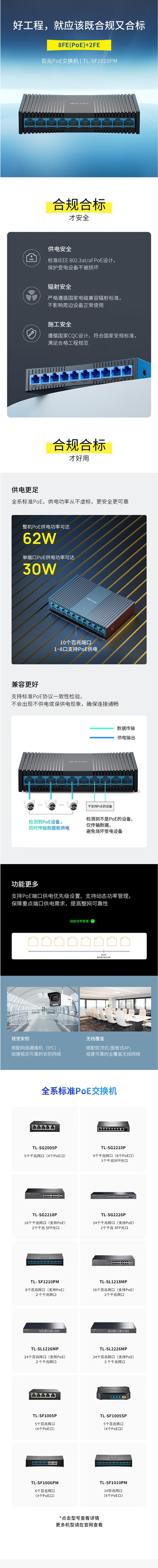 普联(TP-LINK)10口百兆8口poe交换机 家用监控网络集线分线分流器 TL-SF1010PM