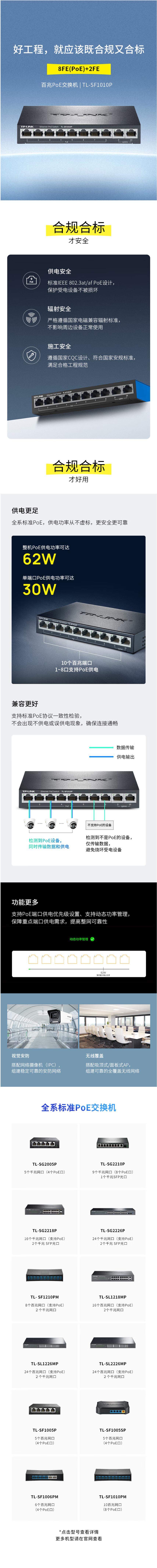 普联(TP-LINK)10口百兆8口poe交换机 家用监控网络集线分线分流器 TL-SF1010P