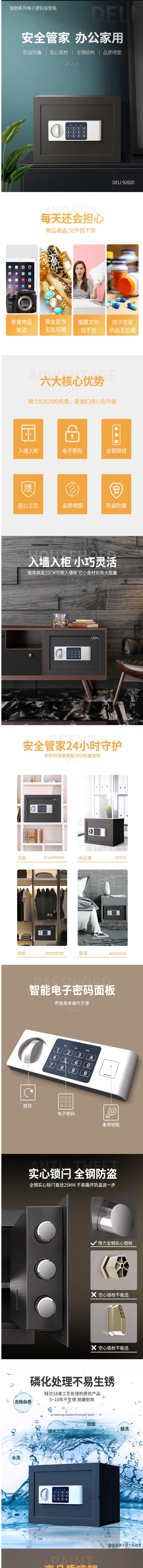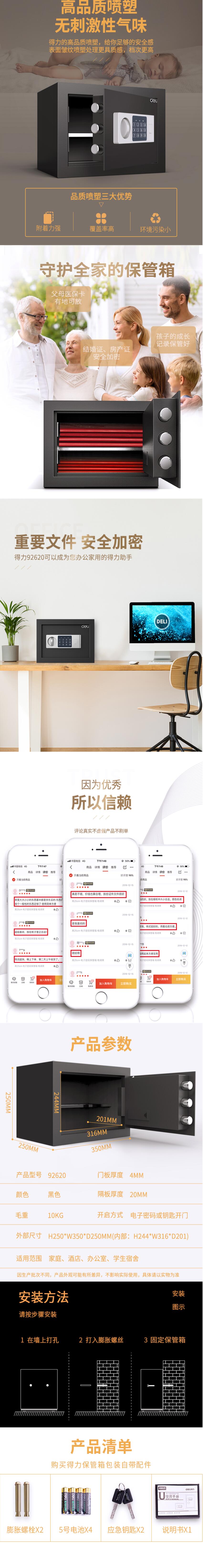 得力保险柜 办公家用电子密码保管箱小型入墙入柜私密箱隐藏保密柜 可固定安装 25cm墨玉黑