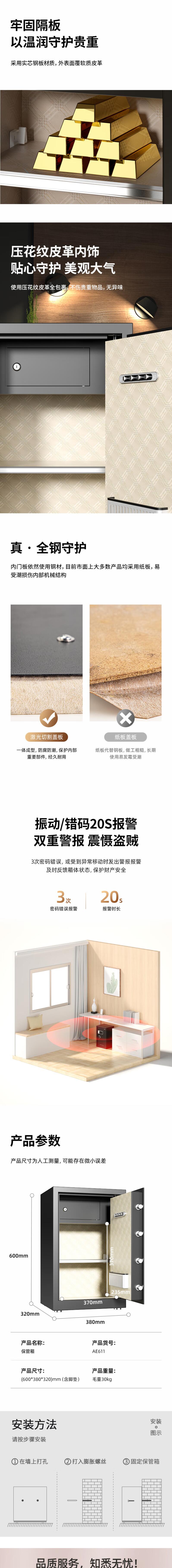 得力保险柜 家用电子密码保险箱办公小型保密箱全钢防盗可入墙入柜保险箱保管柜 曜臻AE611高60cm