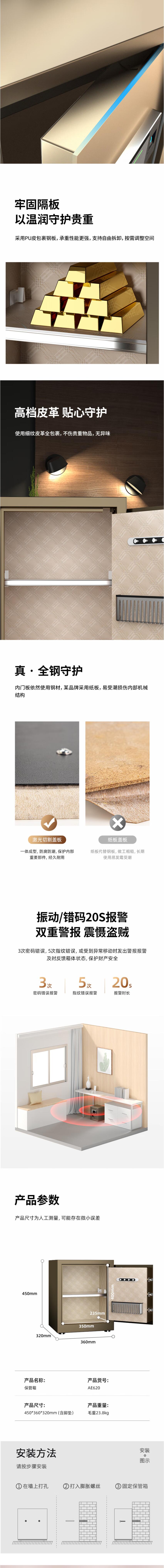 得力保险柜 高45CM办公家用保管箱 半导体指纹+密码双重保险 曜臻金AE620