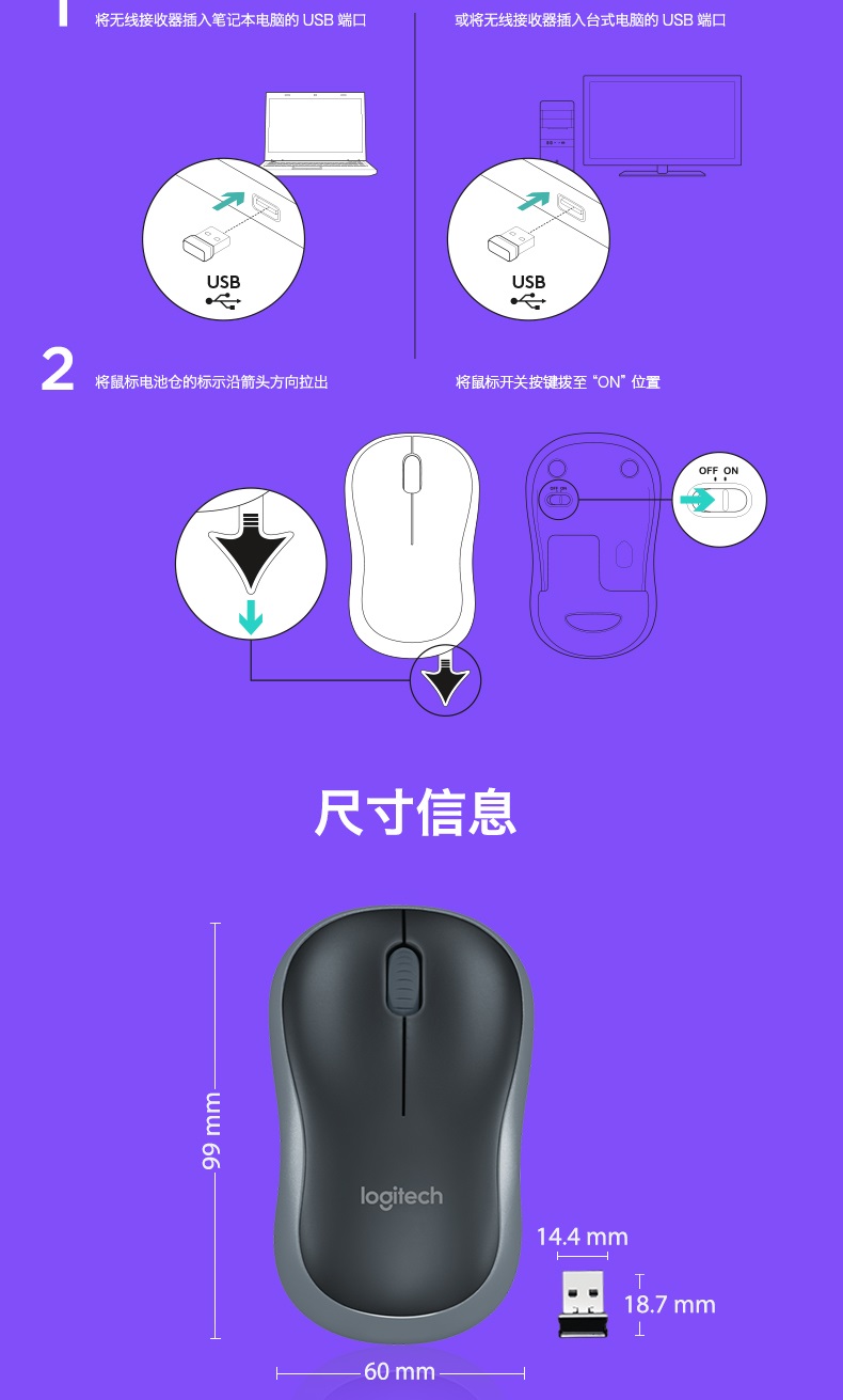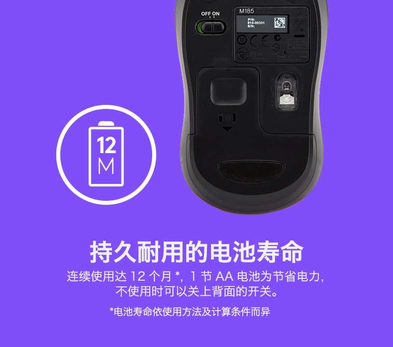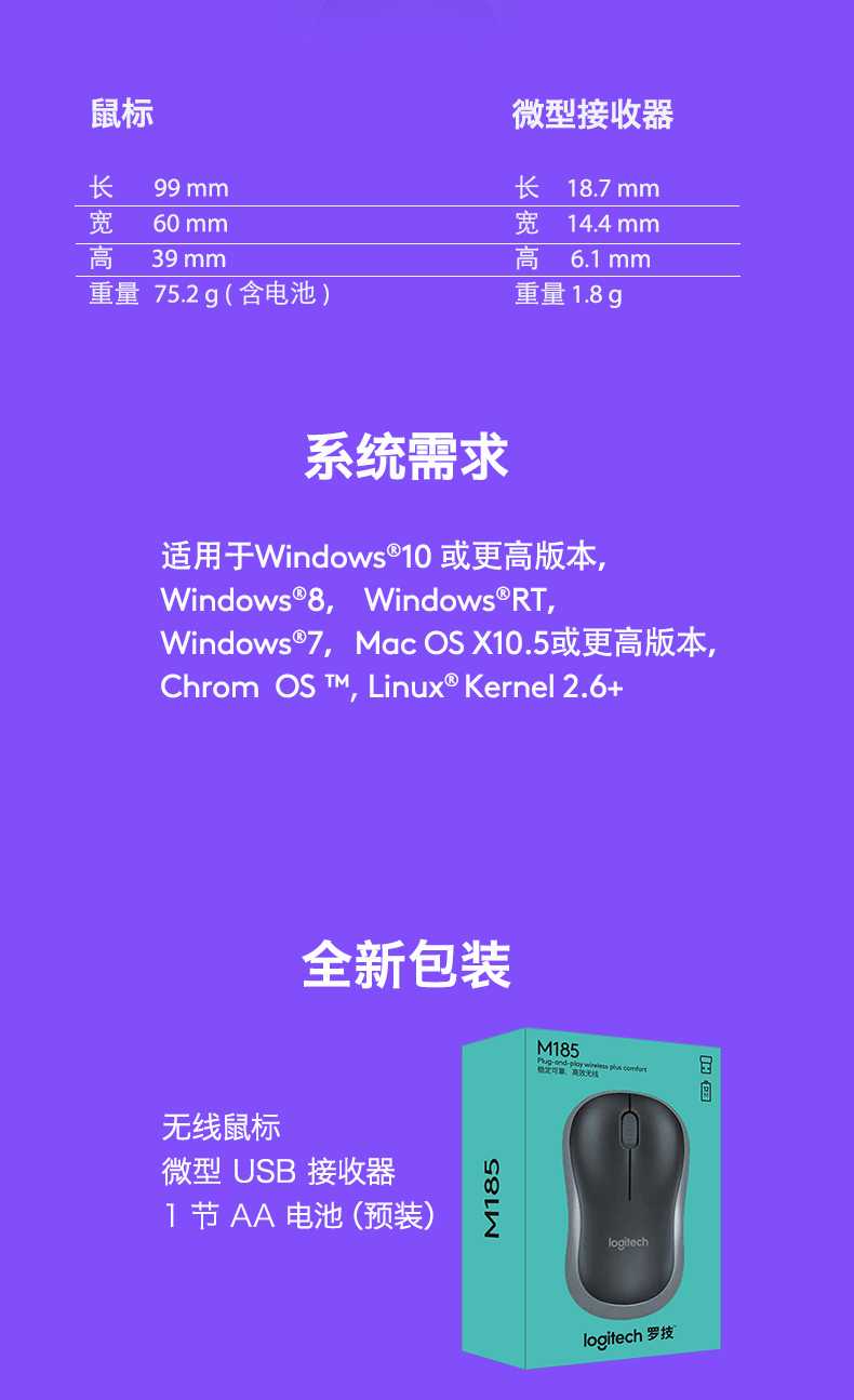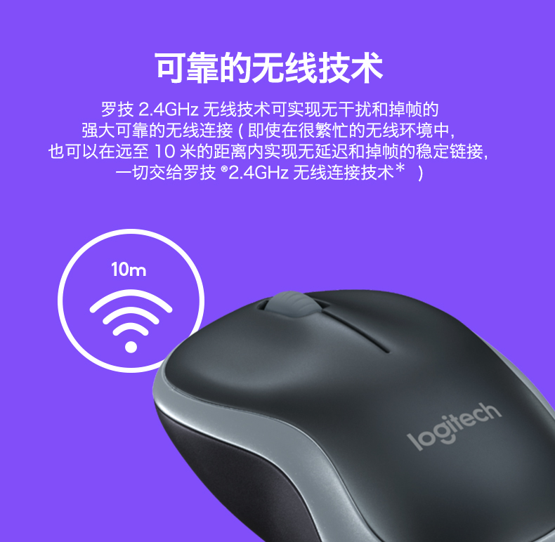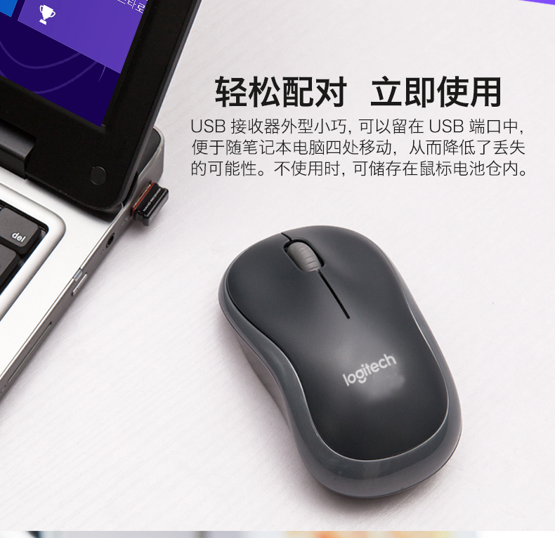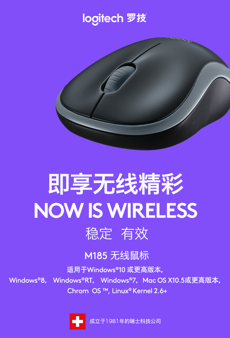 罗技M185 鼠标 无线鼠标 办公鼠标 对称鼠标 带无线2.4G接收器