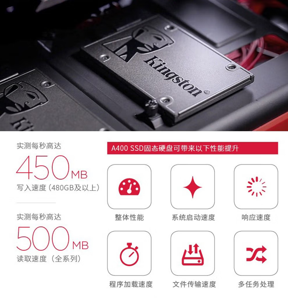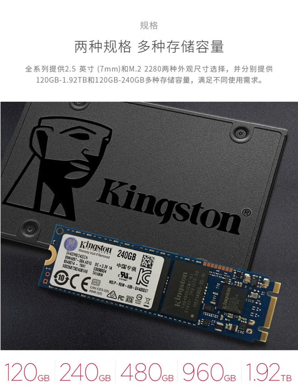 金士顿(Kingston) A400固态硬盘笔记本台式SATA固态硬盘ssd 官方标配