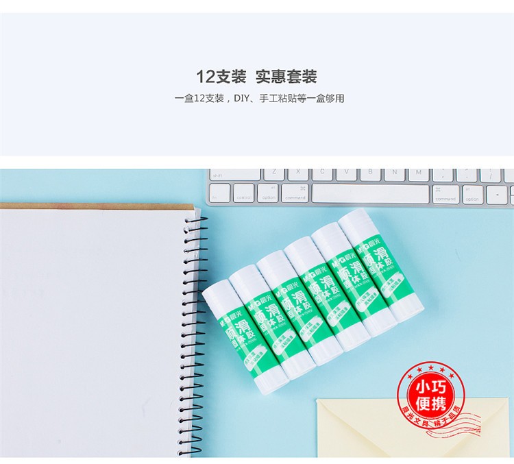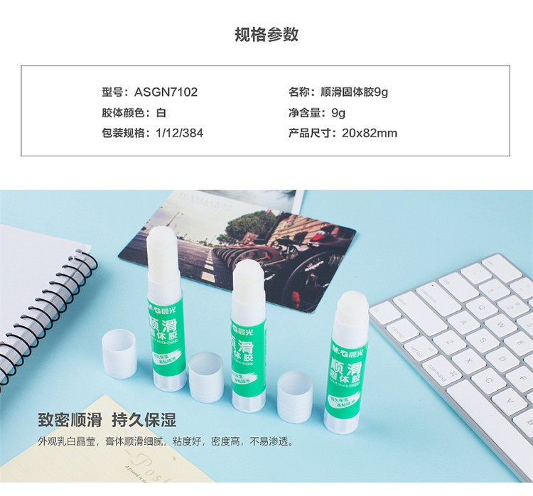 晨光(M&G)ASGN7102 9g固体胶12支装 高粘度胶棒固体胶 学生手工胶水固体胶 办公财务用品