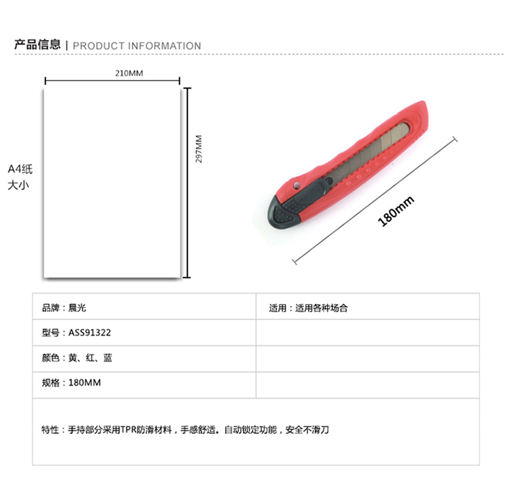 晨光(M&G)ASS91322美工刀3个装 18mm大号裁纸刀 金属切割刀 切纸刀壁纸刀 办公用品 颜色随机