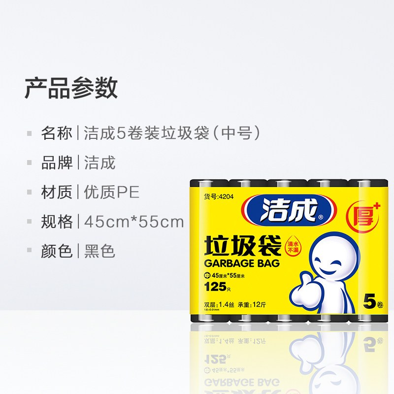 洁成Jicen厚实型家用中号垃圾袋45*55cm增韧5卷装 黑色 黑色