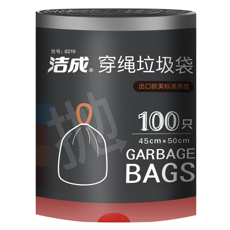 洁成Jicen臻选穿绳垃圾袋家用加厚手提垃圾袋一次性塑料袋自动收口大号