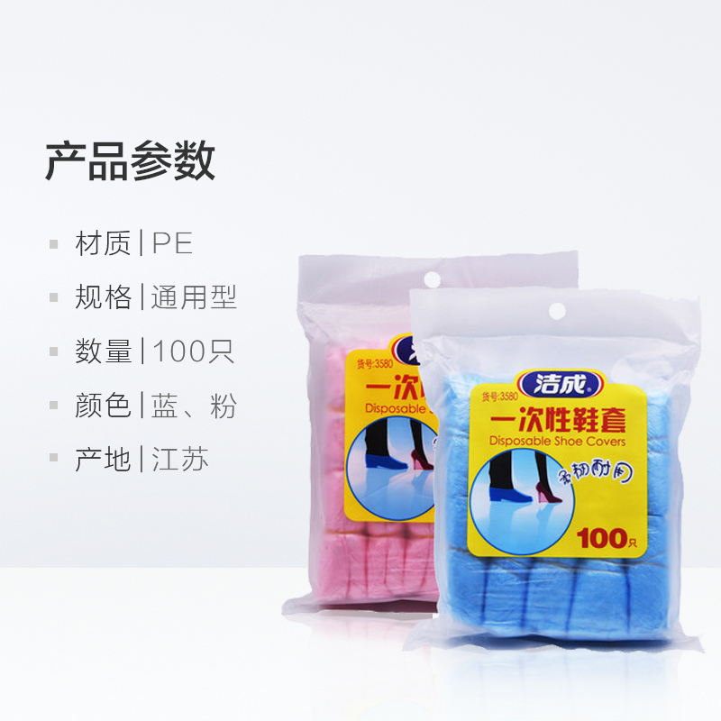洁成Jicen一次性鞋套加厚PE鞋套100只(红蓝2色随机发货)