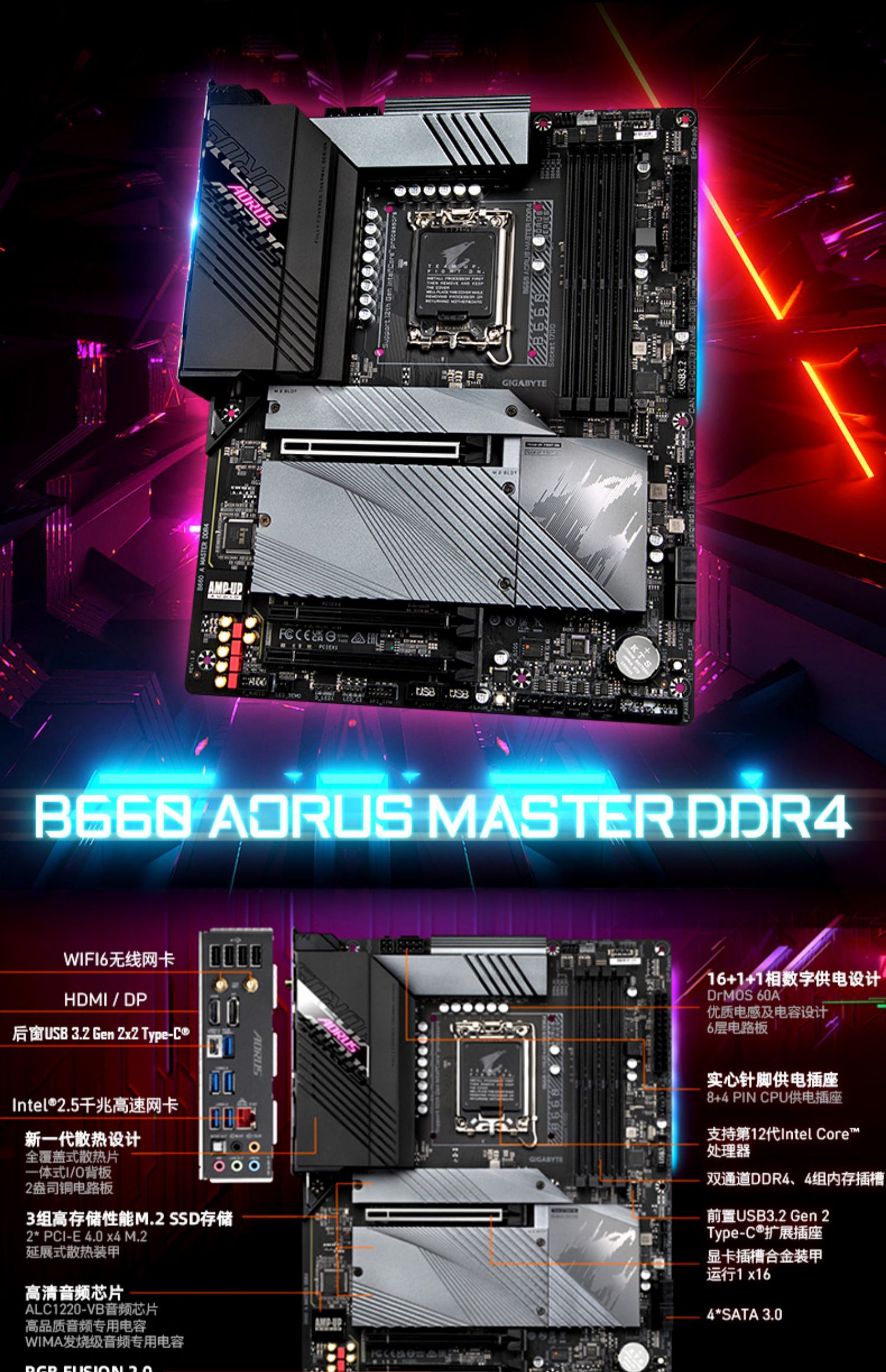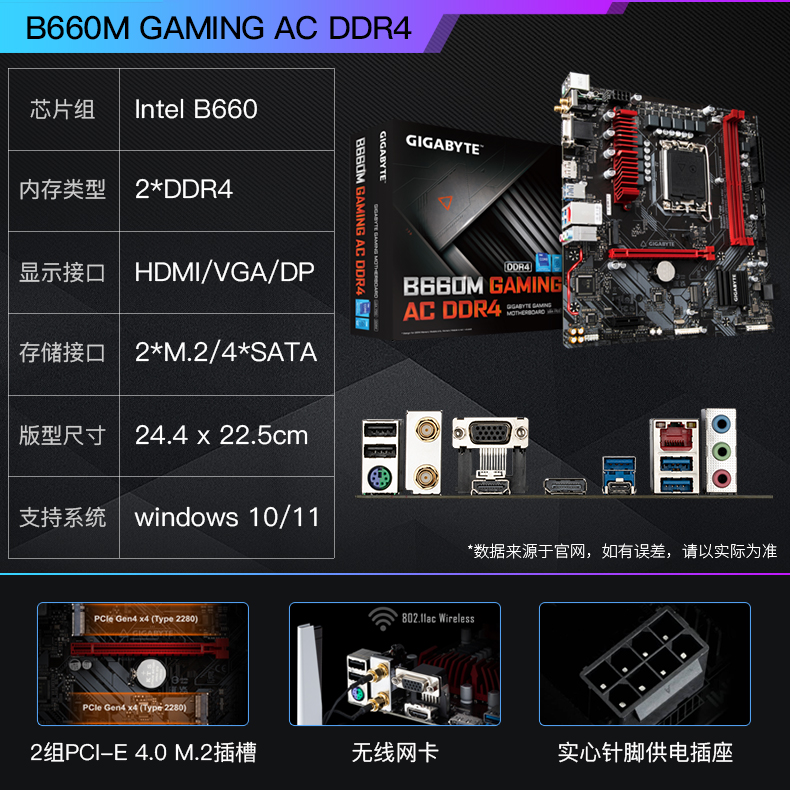 技嘉B660M电竞电脑主板支持12代13代CPU DDR4内存WiFi版