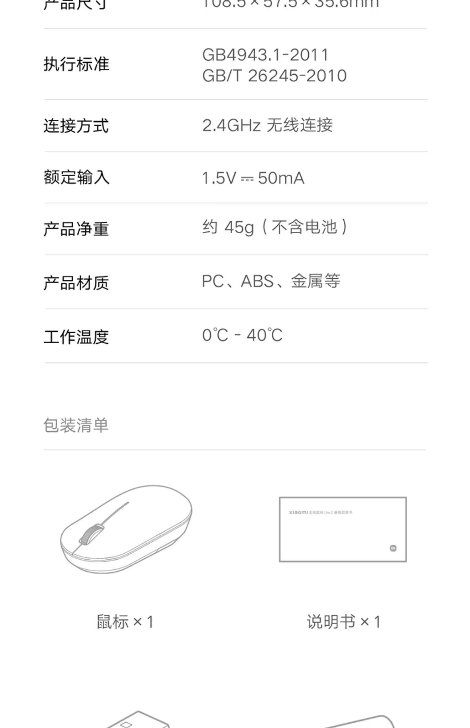 小米无线鼠标lite2 笔记本电脑办公光电便携男女生用滑鼠