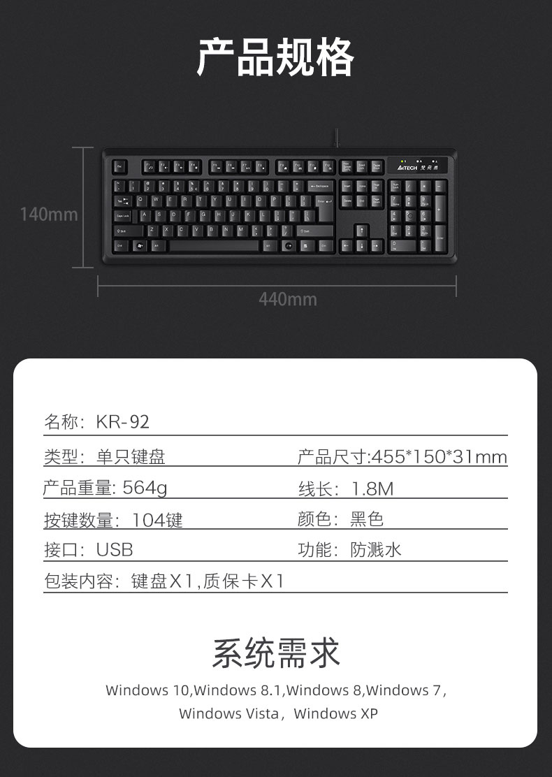 双飞燕KR-92薄膜有线usb键盘台式笔记本电脑外置办公打字专用