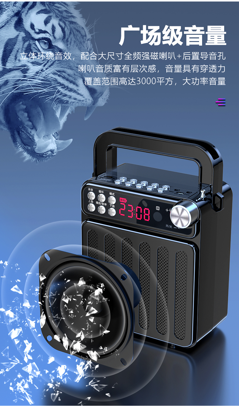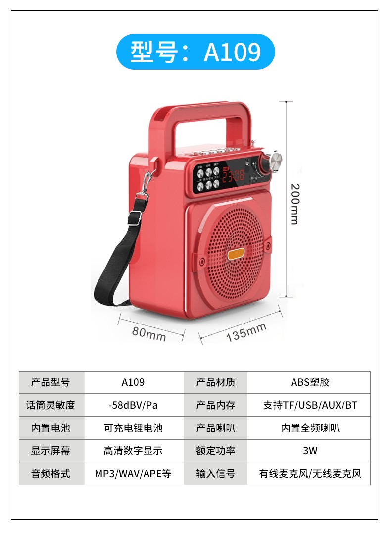 Tbrklm无线蓝牙音箱小音响大音量重低音广场舞专用手提便携式支付宝微信收款语音播报器扩音喇叭网红蓝牙音响A109 A109基础版3-5小时续航送背带★充电线