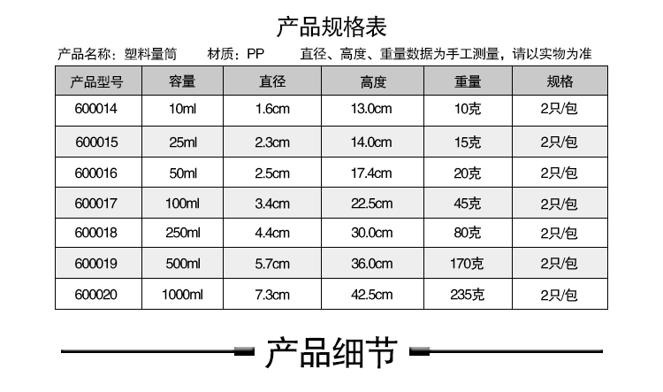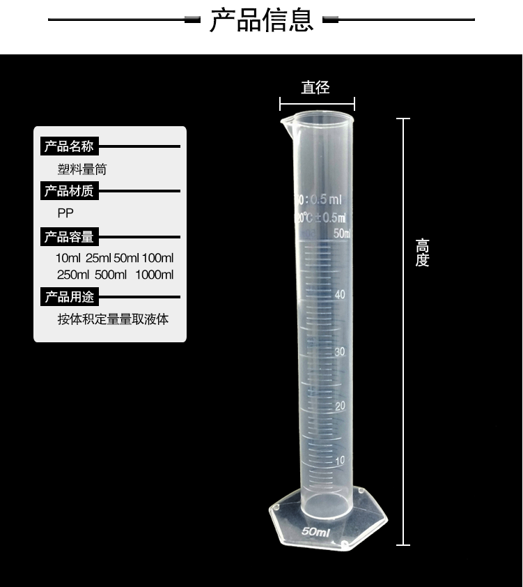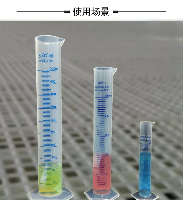 安赛瑞 塑料量筒(2个装)加厚塑料直型量杯高型量筒蓝线刻度 化学实验量筒