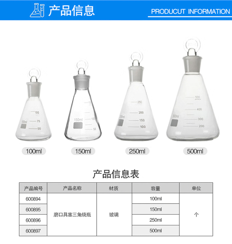 安赛瑞 磨口具塞三角烧瓶 实验室玻璃仪器具塞锥形瓶三角瓶定碘瓶碘量瓶