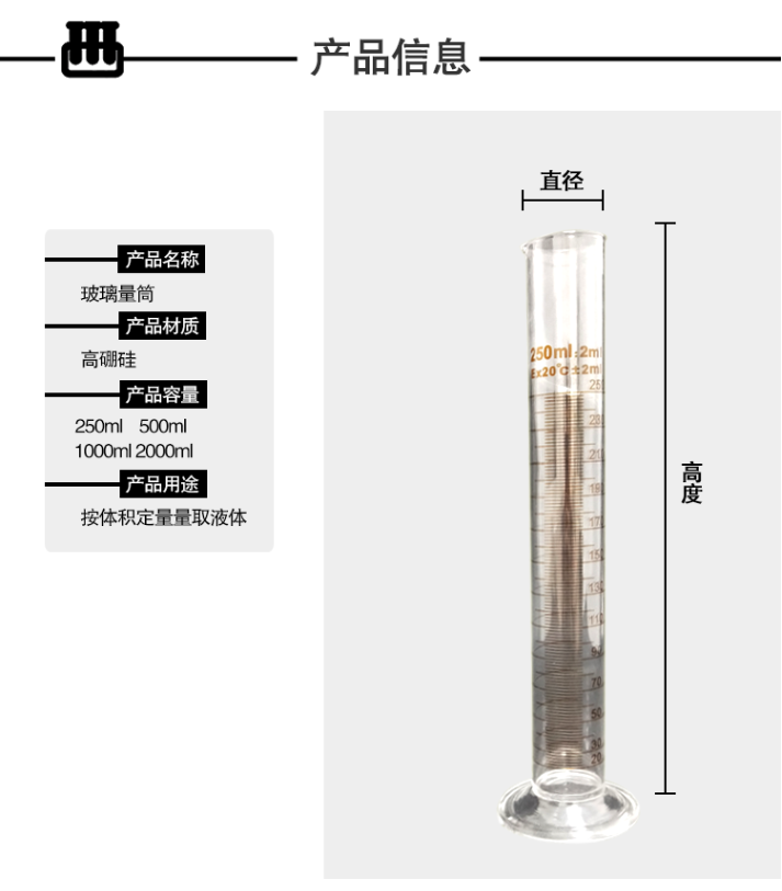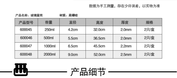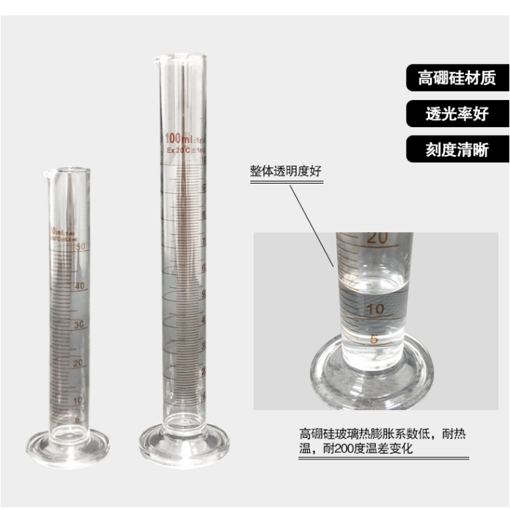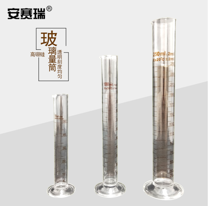 安赛瑞 玻璃量筒(2只装)量出式筒刻度量筒玻璃量筒 橙红标高硼硅直型量筒