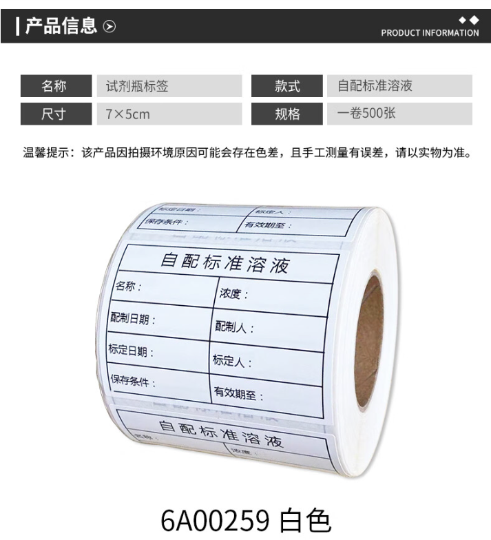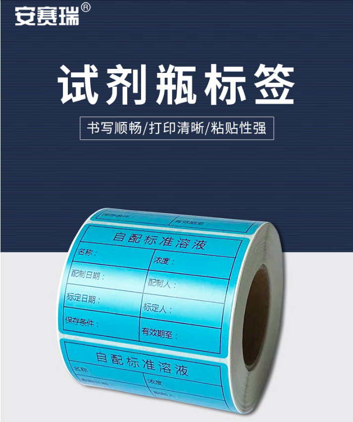 安赛瑞 试剂瓶标签 溶液标贴纸 记号纸 自配溶液标签贴 7x5cm 一卷500张