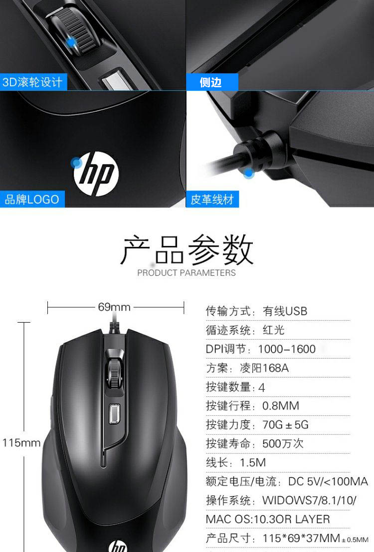 HP/惠普 M150有线光电鼠标 游戏吃鸡LOL办公家用USB接口笔记本电脑专用