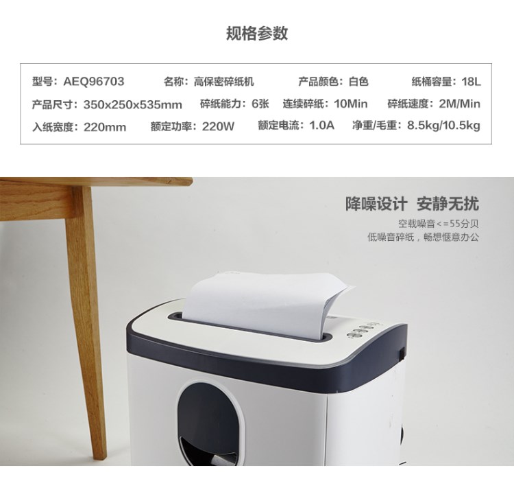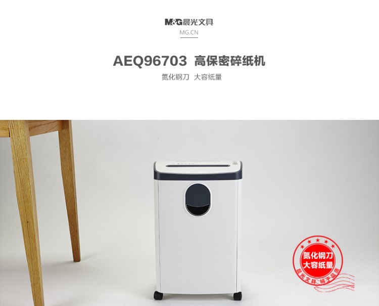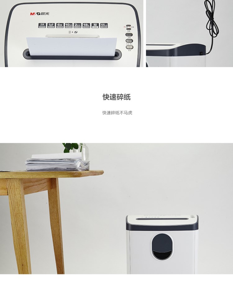 晨光(M&G)AEQ96703碎纸机双入口 5级保密 2*6mm碎状效果 可碎纸6张 18L纸桶容量办公电动文件粉碎机